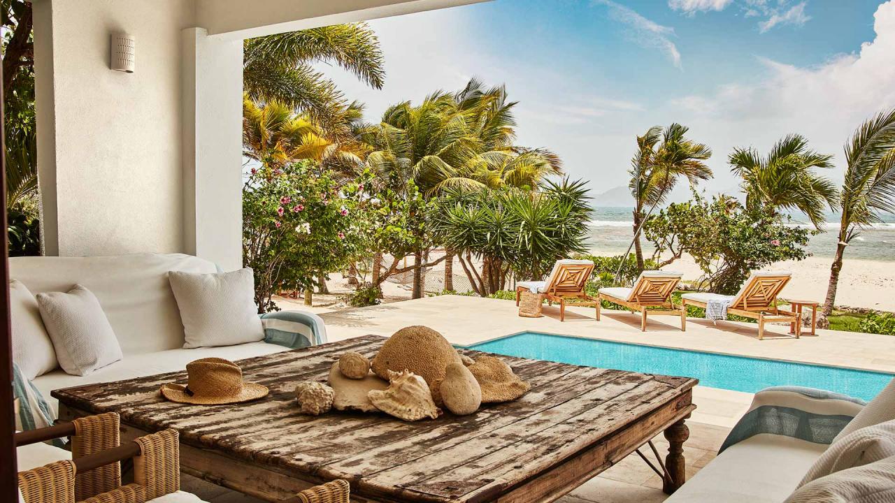 Beach Escape is a gorgeous private villa on the island of Anguilla. This Anguilla beach rental has five bedrooms all with ensuite bathrooms. Beach Escape is perfect for up to 10 guests and offers lovely views of St. Martin from nearly every room.