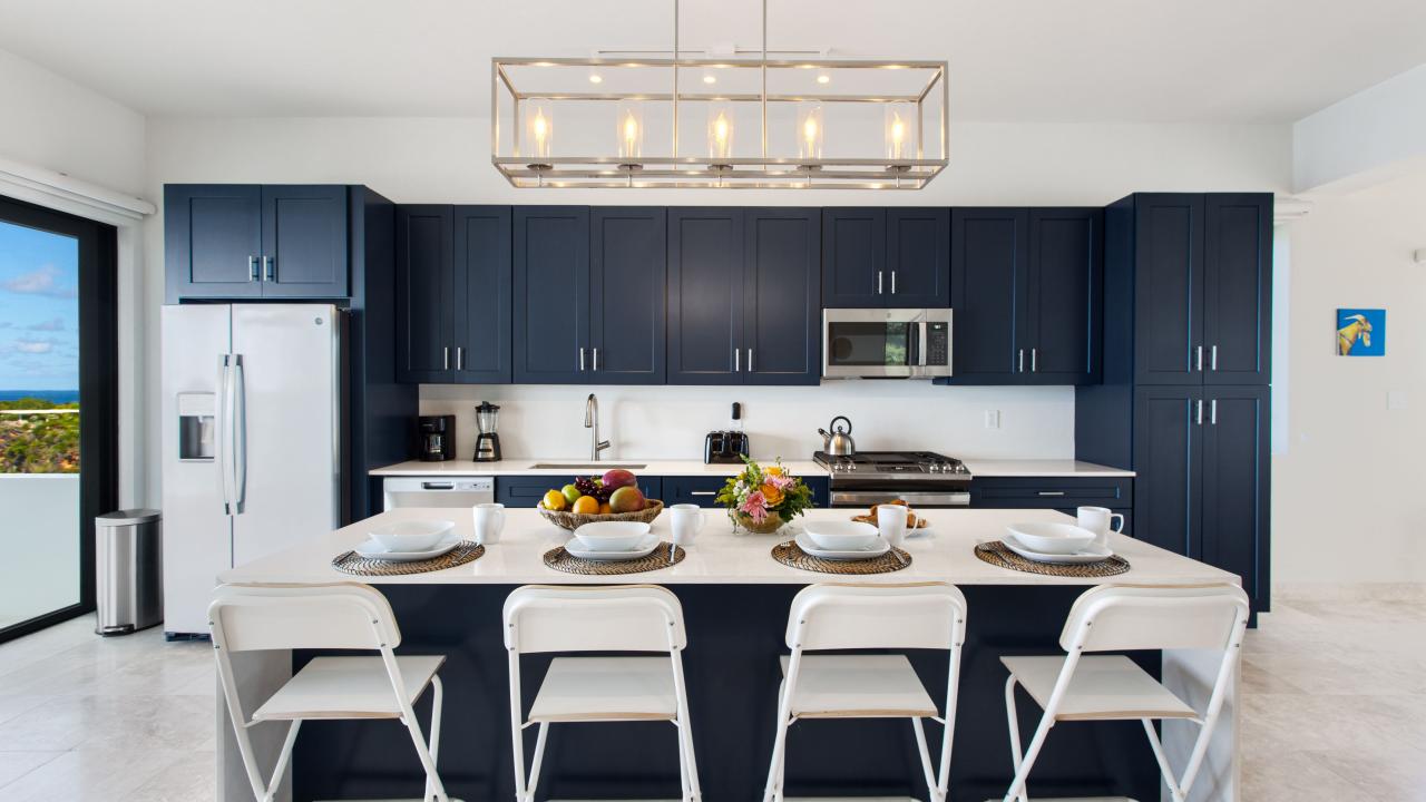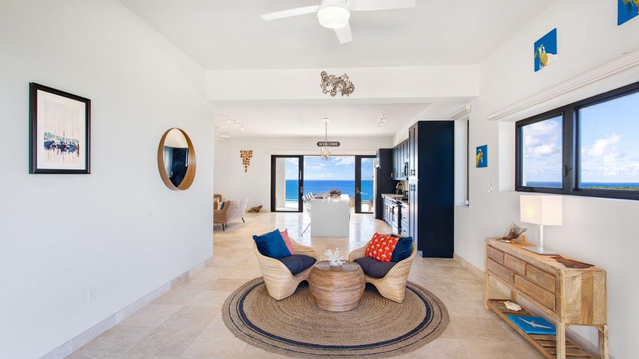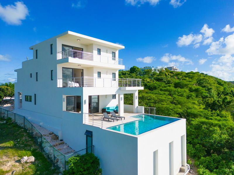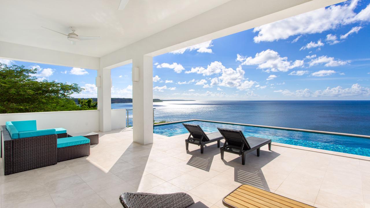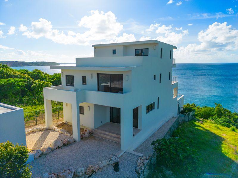 Little Bay View Villa is a newly constructed Anguilla rental with a modern design and clean lines and offers stunning views of Little Bay beach and its dramatic cliffs. The villa features a chef's kitchen, a large infinity-edge pool, a spacious deck, and three air-conditioned bedrooms with walk-in closets, ensuite bathrooms, and private patios. This villa is perfect for small families, couples, or friends seeking a centrally located retreat in Anguilla. Guests can enjoy snorkeling and cliff jumping at Little Bay or relax on the pool deck with mesmerizing sunset views while being close to Crocus Bay Beach for dining, water sports, and boating at Davida's restaurant.