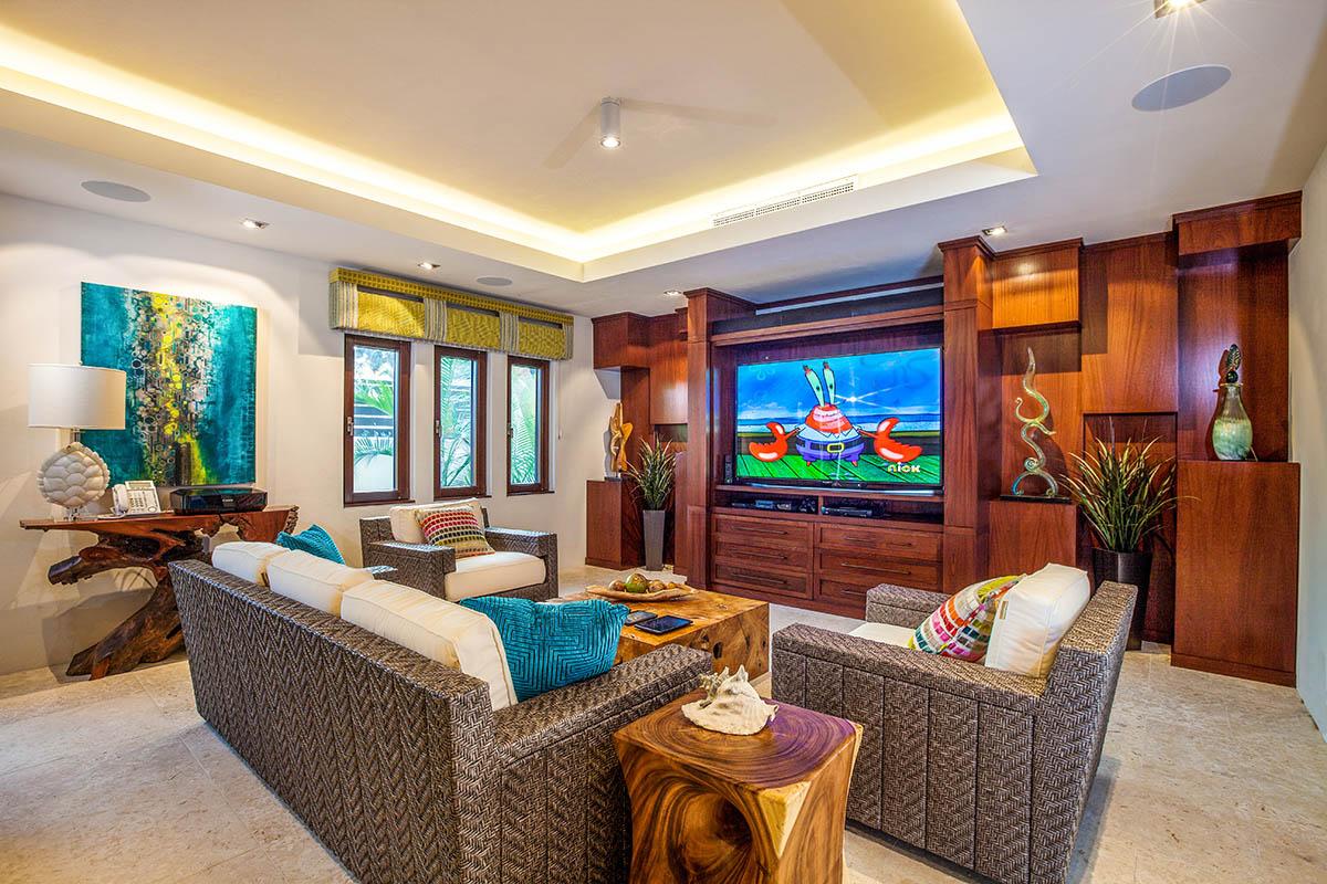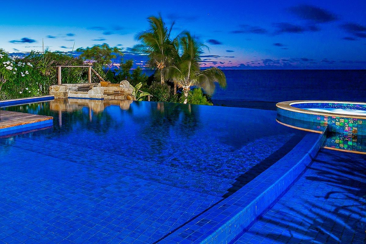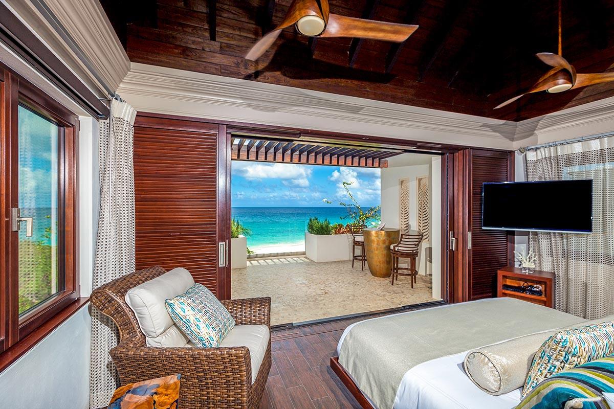 This incredible villa in Anguilla also has a unique large freshwater infinity pool with waterfall, a lighted Astroturf tennis court that doubles as a basketball court, a dedicated air-conditioned gym, a state-of-the-art golf simulator and a nine-seat movie theater with surround-sound and X-box console, and a Sonus music system throughout the villa. Sea scooters and stand-up paddle boards, beach volleyball and kayaks are all part of the fun on the beach. And Nevaeh's large staff is dedicated to making your visit a dream come true!