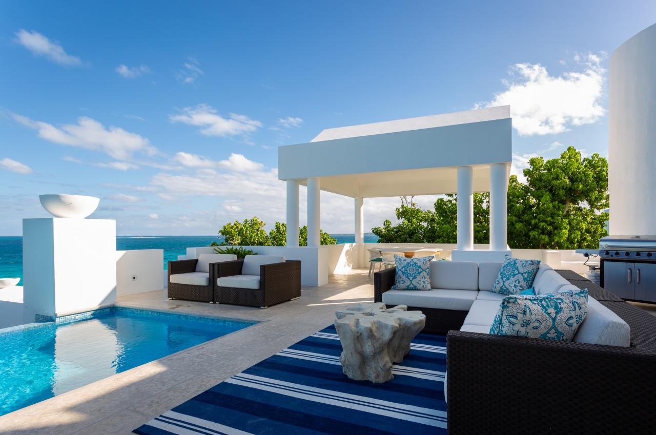 This newly transformed villa evokes tranquility and comfort. The interior is impeccably maintained by the full-time housekeeping staff. While the concierge and bulter are available to help make your vacation experience whatever you desire. Sea Villa provide sguests both privacy and gathering space in her six bedrooms. A fully equipped villa complete with private sea view pool, hot tub, outdoor showers, gourmet kitchen, alfresco dining pavilion, BBQ, flat screen televisions and WiFi.