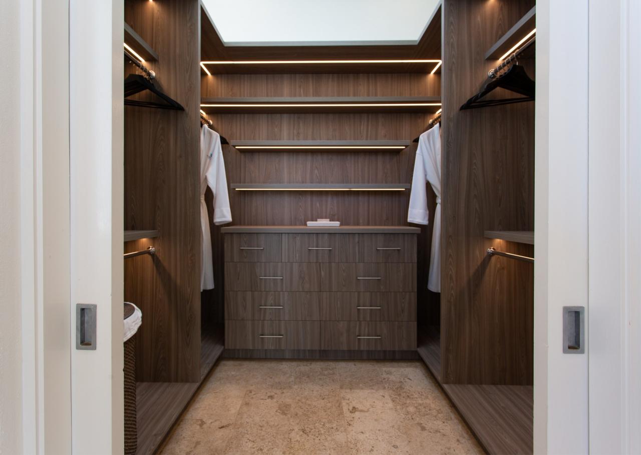 Primary Bedroom 4: This room is located on the lower level and is equipped with a king-sized bed (which can be converted into two twin-sized beds upon request), air conditioning, a ceiling fan, a seating area, and an ensuite bathroom with indoor and outdoor showers, a freestanding bathtub, double vanities, and a walk-in closet. This room also opens onto a furnished terrace with a sea view.