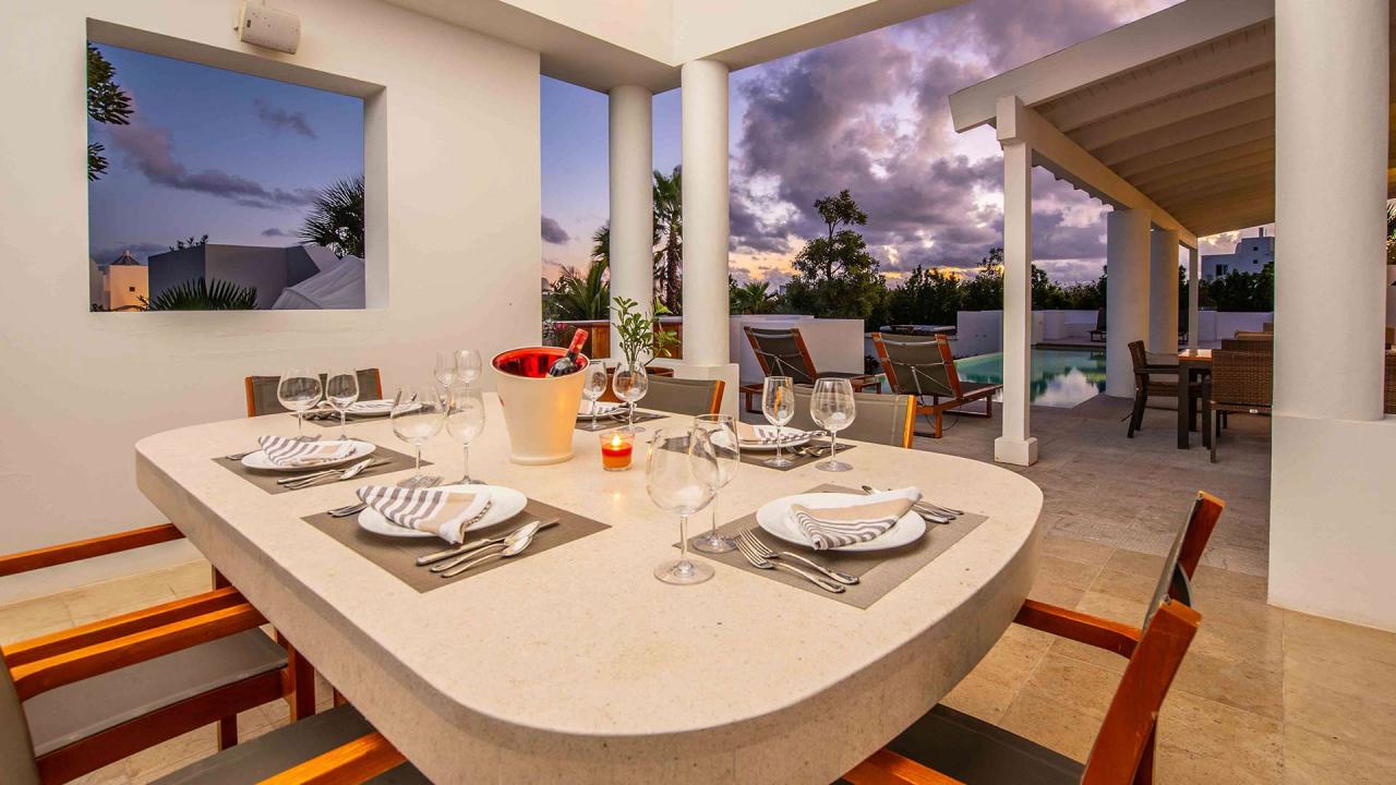 Shiloh Estate offers stunning views of the golf course, an outdoor living area which includes a private pool, multiple seating areas and terraces, day beds, outdoor dining, jacuzzi, BBQ, and tropical gardens.