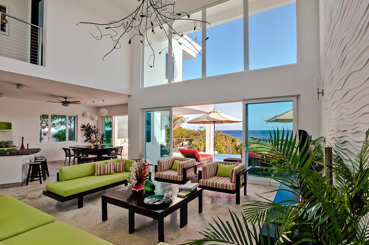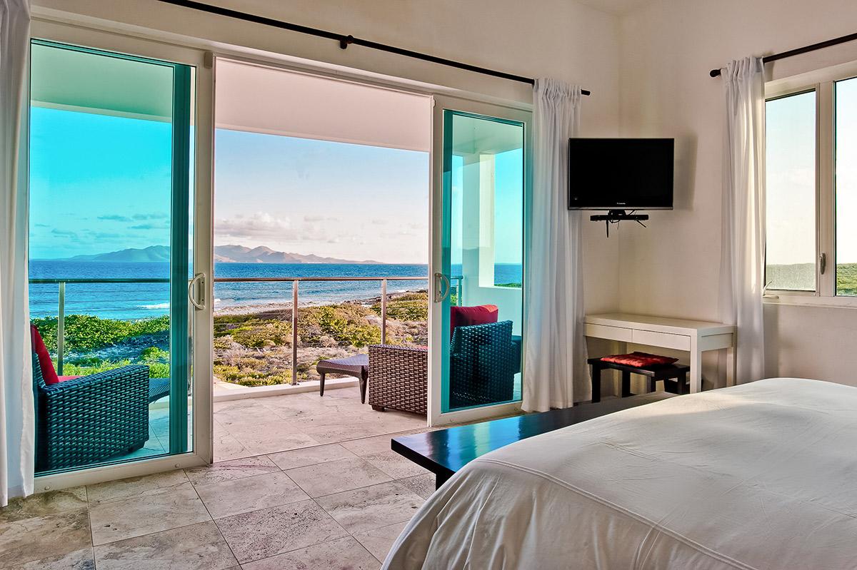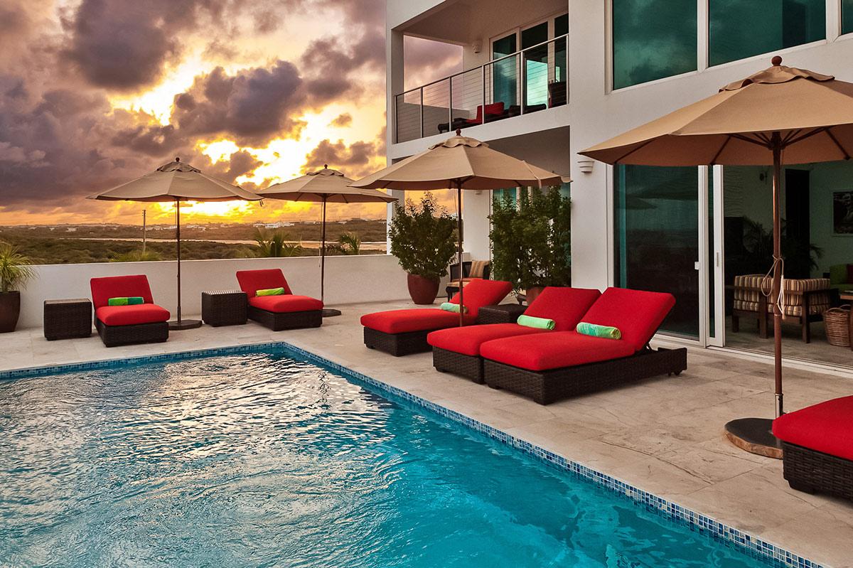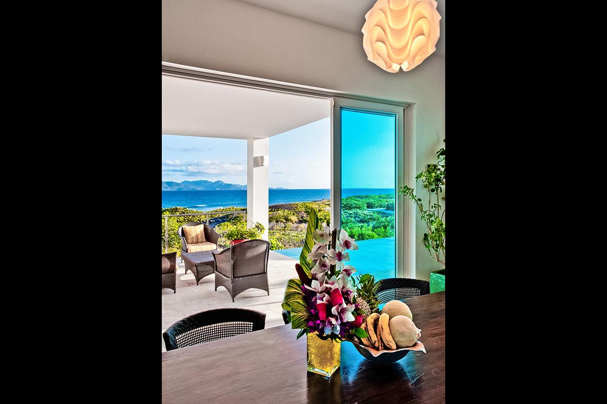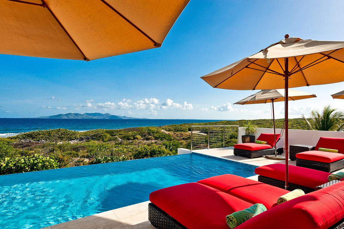 Tequila Sunrise is a beautiful contemporary villa located on the southern shore of Anguilla. The villa overlooks the Caribbean Sea and the mountains of St. Martin. Accessible to all the conveniences of modern living, Tequila Sunrise is a private retreat that allows for interaction with the perfect serenity of nature. Large expanses of glass doors and windows optimize views of the ocean, and miles of the surrounding natural landscape. The open floor plan of the ground floor emphasizes spaciousness while encouraging the flow of the tantalizing cool trade winds. All bedrooms overlook the pool, the ocean, and majestic, undulating mountains of St. Martin. The large infinity swimming pool is surrounded on three sides with lounging and relaxation areas, and on the fourth side by the beach and ocean with a breathtaking view of St. Martin, St. Barths, and on a clear day even St. Kitts, 75 miles away. Meander down to the beach, snorkel, recline poolside, or laze in the sun on your private patio, and be lulled by the rhythms of the surf. As an Anguilla villa rentals guest, you will enjoy every luxury imaginable. Contact Villa Luxe for your Anguilla villa rental.