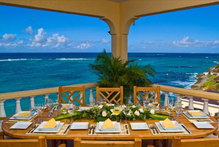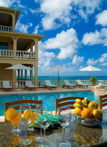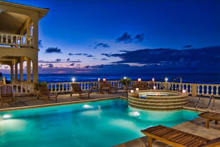 Ultimacy is a gorgeous 8 bedroom, 10 bathroom villa in the prestigious Rose Hill neighborhood on Anguilla's northeast shore. This property has plenty of space to accommodate large family gatherings or can be intimate enough for a couples getaway. There are so many areas where you can relax and unwind, entertain your guests or just enjoy the peaceful sounds of the sea. The best part is the full time staff of butler, housekeeper and food and beverage host. They are there to make your stay most enjoyable! The lush grounds of Ultimacy even have a protected national marine park at the property's edge. Once inside you will love the beautiful furnishings, the three living rooms and three kitchens. There are about 20,000 square feet of indoor and outdoor space to call your own. The three outdoor pavilion areas have everything you could ask for including a private pool, outdoor dining areas, and a wet bar. The amenities are that of a five star resort. If your are curious about activities and entertainment, look no further than the large recreation room on the ground floor. Here you will find a jukebox, a plasma tv, a wet bar and multiple seating areas. There is also an office and a state of the art fitness room.