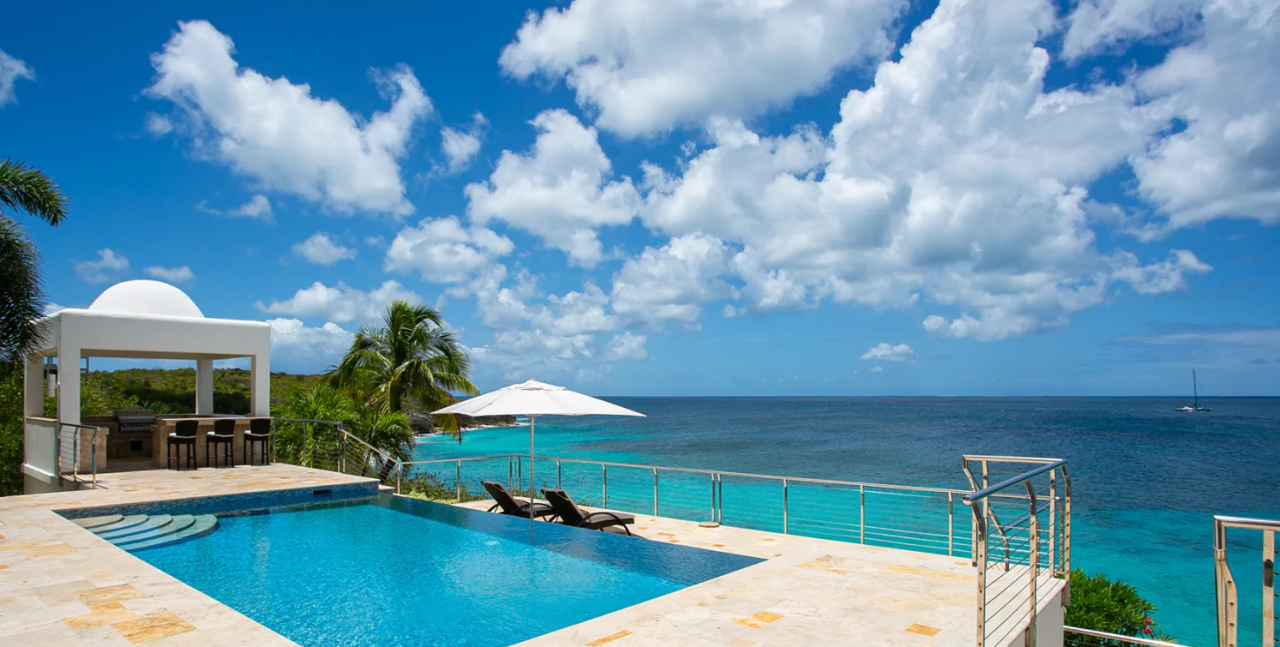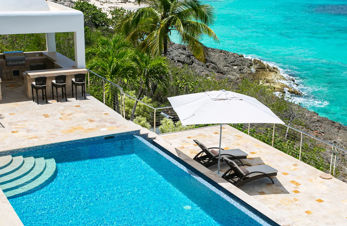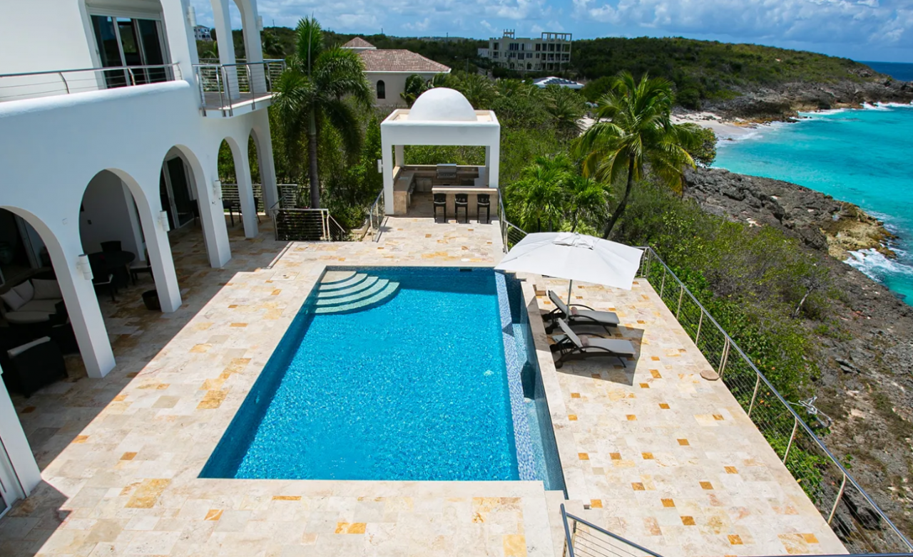 Spanning over 11,000 square feet, Villa Azul is a striking blend of Moroccan-inspired design and Caribbean luxury. Just steps from the untouched white sands of Limestone Bay, this five-bedroom estate offers a seamless connection between indoor elegance and outdoor beauty. The open-plan living and dining area, crowned by a dramatic vaulted dome ceiling, flows effortlessly out to a spectacular two-tier infinity pool with panoramic views of the turquoise sea.