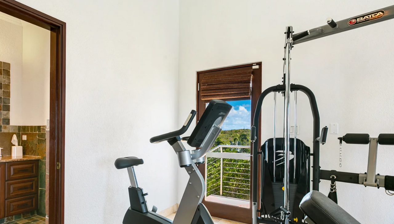 Perfectly designed for entertaining, the expansive outdoor terrace features a bar, grill, and ample lounging space beneath the stars. On the main floor, four generously sized king suites provide comfort and privacy—two of them with direct access to the pool deck. For added seclusion, the upper level houses a private guest apartment, complete with its own living and dining areas, kitchenette, and a fully equipped gym for fitness-minded guests.