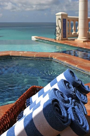 By the amazing natural beauty, privacy and total comfort. The coveted location, exquisite attention to detail and tailoring to the desires of our guests has cumulated in the perfect holiday retreat. The entire design of the villa was developed to transform and relax you. From the precise placement of the walls of glass that open to allow the tropical scented trade winds blow through, to the enveloping furnishings, you will feel the stress of the real world melt away as you take your first steps through the eighteenth century hand carved doors. Five spacious, sumptuously appointed bedrooms are havens of ultimate comfort and supreme elegance, fully air-conditioned with ceiling fans and Italian handcrafted Egyptian cotton linens. You and your guests will enjoy the amazing vanishing edge pool, large covered and open-air decks, heated spa, romantic thatched roof bar and steps to the sea. All bedrooms face the soothing azure ocean and open to a deck or terrace. Villa Azure is one of the prime villas in Anguilla. Contact Villa Luxe for your Anguilla villa rental.