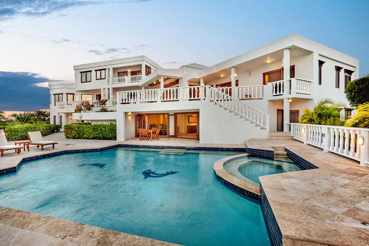 Villa Infinity is also 14,000 luxurious square feet and 8 bedrooms. The furnishings and interior design successfully blend distinctive Caribbean charm with contemporary sophistication. Fine finishes of marble, granite and exotic hardwoods with sea grass and banana leaf accents grace this elegant villa. All bedrooms are air-conditioned with ceiling fans, screened doors and windows, and most have plasma TV’s and DVD players. Enjoy modern comforts such as complimentary wifi, outdoor shower, iPod dock plus magnificent Bose stereo sound - both indoors and poolside. This villa has most amenties as her sister villas, Villa Harmony and Villa Mystique.