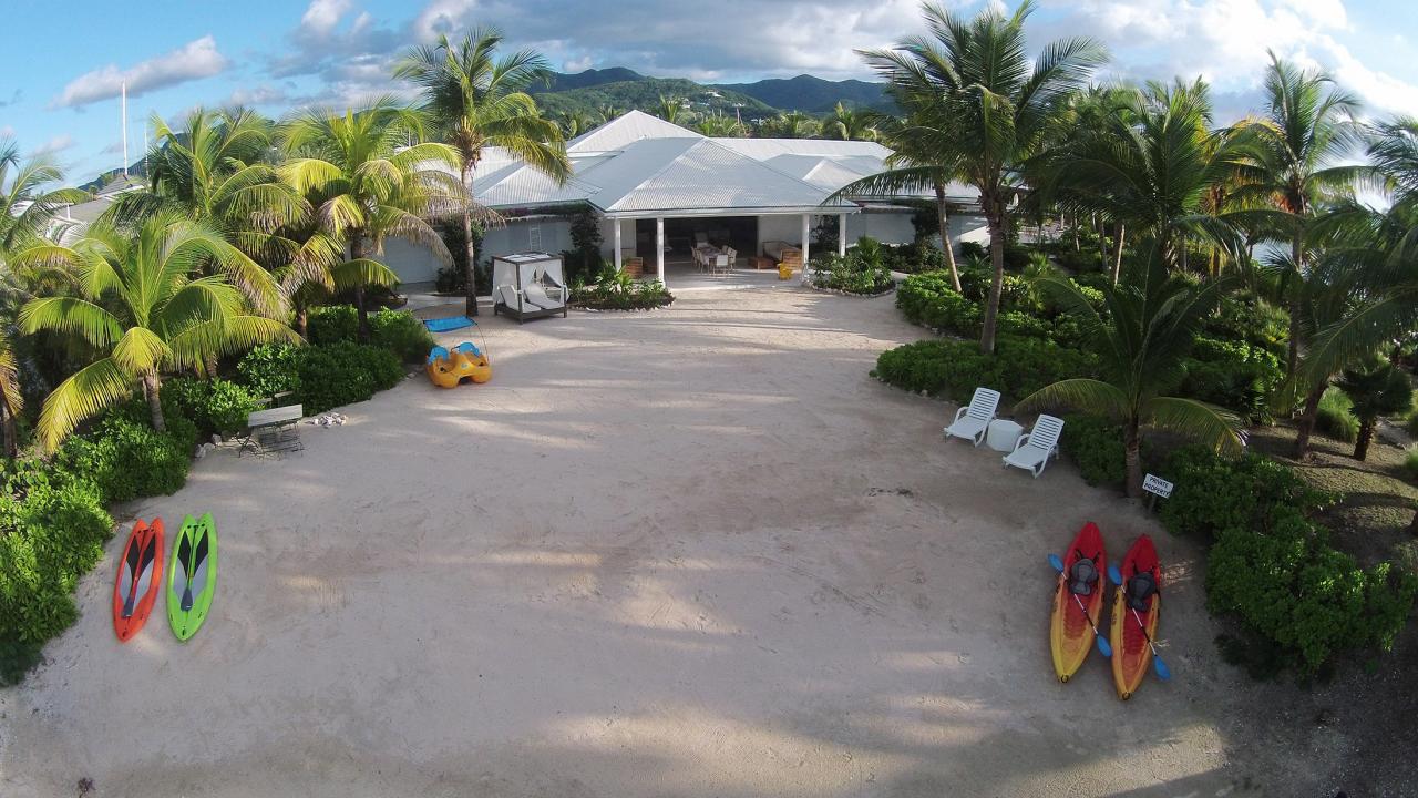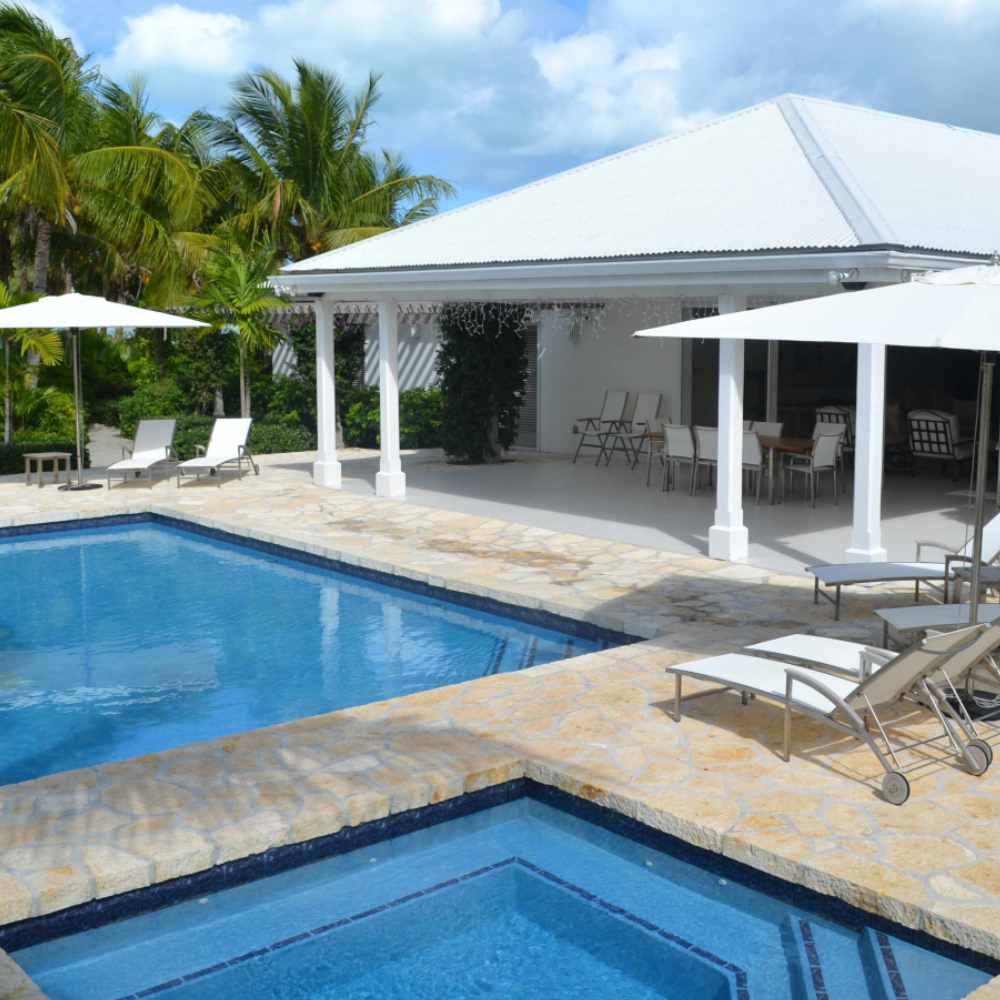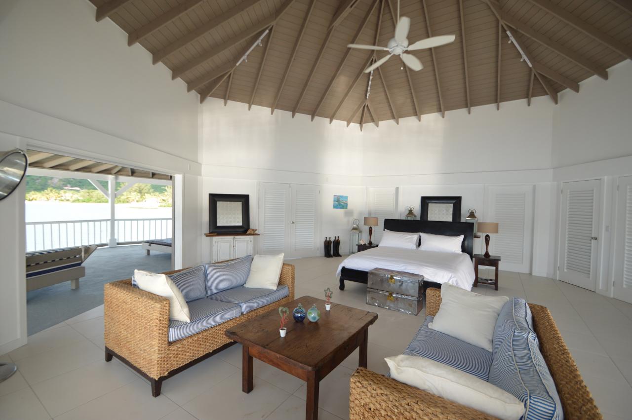The infinity pool and Jacuzzi are set into stone paving and benefit from sizeable covered terraces around the villa, while the surrounding tropical gardens have been especially landscaped to give shaded areas of peace and tranquillity away from the house. Guests can choose to dine, either by the pool watching the boats come in to the harbour, or entertain on the private beach.