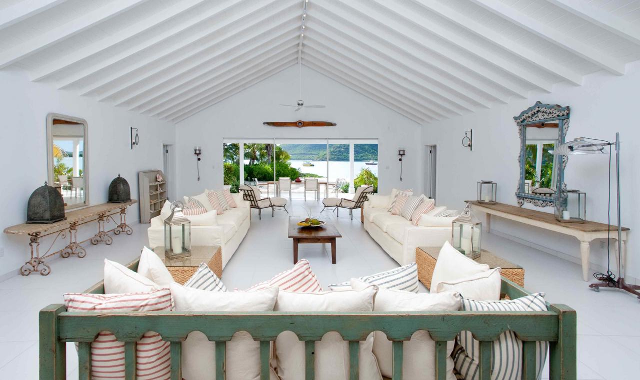 The spacious 12,000 square-foot villa features dramatic vaulted ceilings over the central lobby and open-plan lounges leading directly out to the pool, the white sand beach and the ocean beyond. Six superb en-suite bedrooms surround the living areas, with an additional seventh Gazebo bedroom located over the ocean commanding stunning 360 degree views. Each individual suite is decorated in cool contemporary design and all are only steps away from the beach and the ocean.
