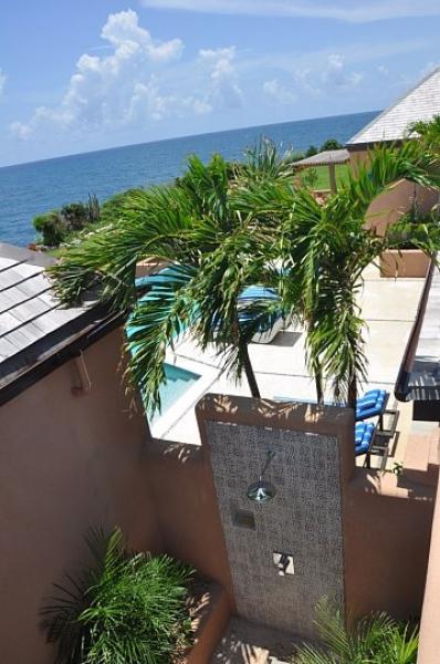 Villa Azura is a recently constructed property in a private location on the east coast of Antigua close to some of the finest beaches in Antigua. Long Bay is less than a 5 minute drive away. The villa has a roof terrace designed to enjoy the spectacular sunsets and coastal views. Villa Azura is set in 1½ acres of landscaped grounds, has a stunning infinity edged pool overlooking the sea, 3 bedrooms with the Caribbean's first air conditioned beds, outdoor rain showers, built-in BBQ and verandah dining. Villa Azura is staffed by a house manager, housekeeper and gardener. The house manager lives locally and will meet and greet guests upon arrival. The housekeeper works 5 days a week as does the gardener. There is a pool maintenance service once a week. A cook or chef can be arranged if required as can house provisioning. Villa Azura is one of the top villas in Antigua. Relax and enjoy Antigua vacation rentals with Villa Luxe.