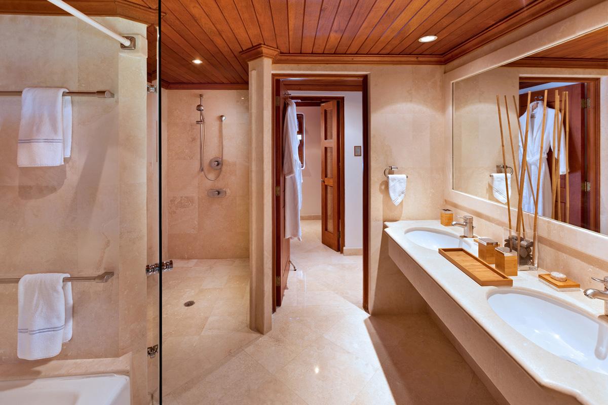 Primary: king bed, ensuite bathroom with tub and shower with double vanity