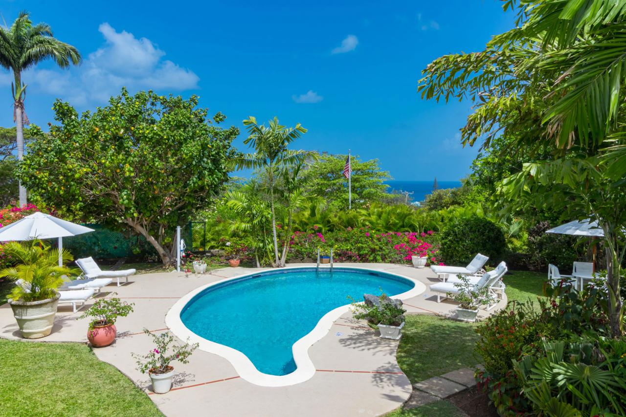 Casabella, a 4 bedroom villa with Caribbean Sea views. Situated on a breezy ridge front on the West Coast of Barbados, the interior features a living room, formal dining room, fully equipped kitchen and 4 en-suite bedrooms all with air-conditioning. The Master benefits from a private balcony with stunning sea views. The spacious grounds include a private swimming pool, Jacuzzi, covered terrace with alfresco dining table and lounge all surrounded by lush topical gardens.