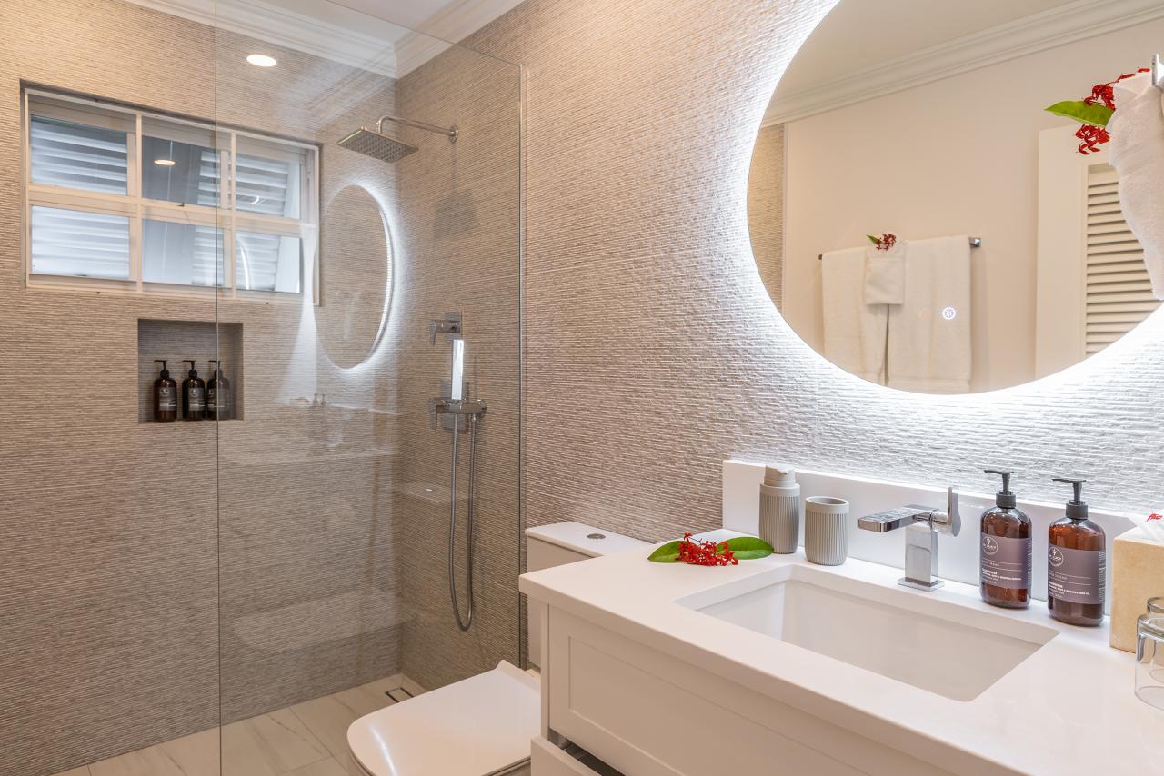 The main floor contains the spacious family room, an additional full bathroom and spacious living and dining areas which merge on to the patio. This area commands a stunning view of the swimming pool and deck area as well as the coral-sand beaches. Fosters House creates a warm family home for anyone who stays there.