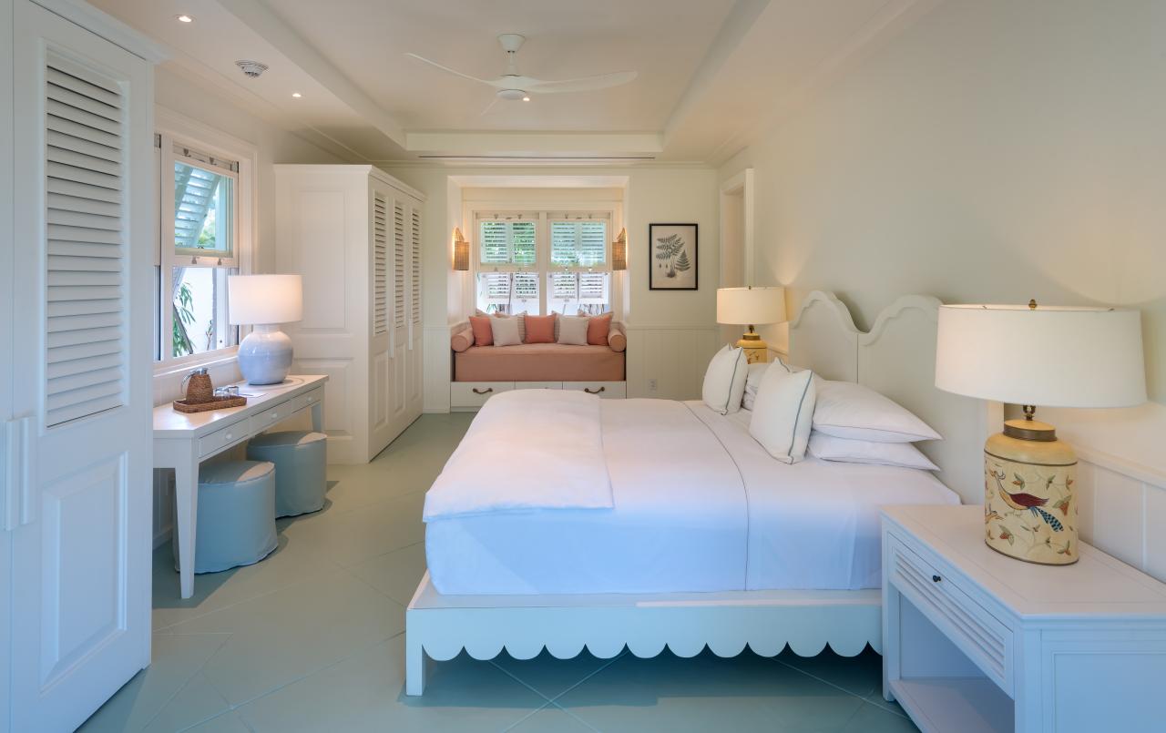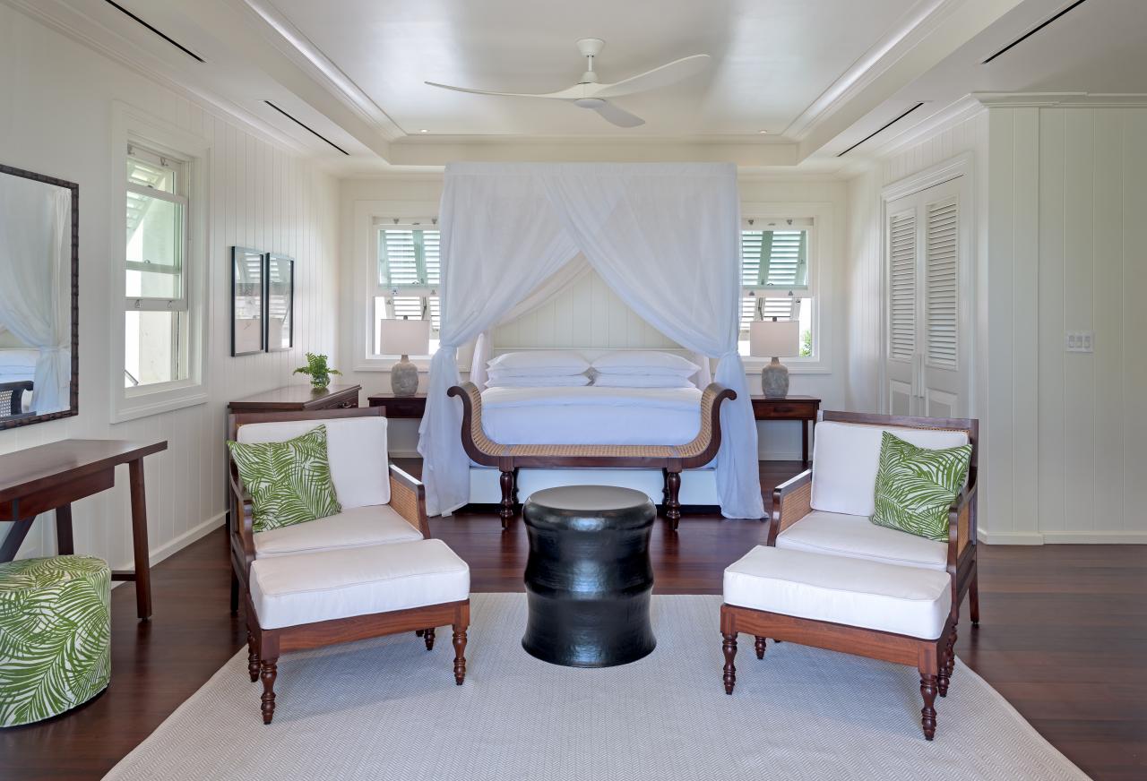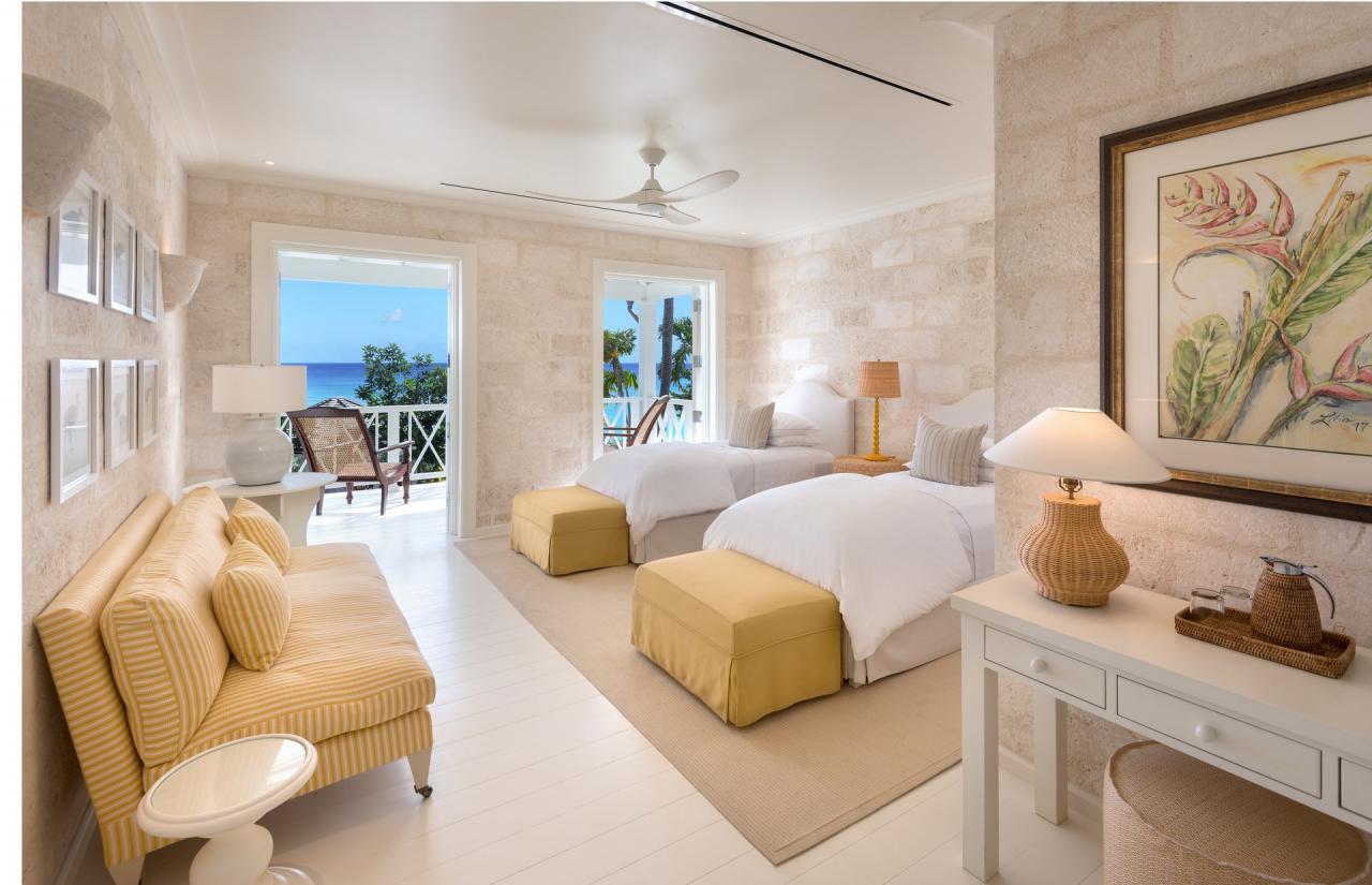 The water side of The Great House is equipped with The Great Bar that looks over a large infinity pool and the Caribbean Sea. There are twelve suites between The Great House, the Carriage House, the two cottages, and Hillaby House that can accommodate 30 guests. The seaside of The Great House offers many opportunities for guests to formally or informally dine, relax, or entertain. On the other side of the villa, a game room, home cinema, spa room, fully equipped gym, a conference room, and a floodlit US Open-style tennis court are set amongst lily ponds, lawns, and beautifully tended gardens.
