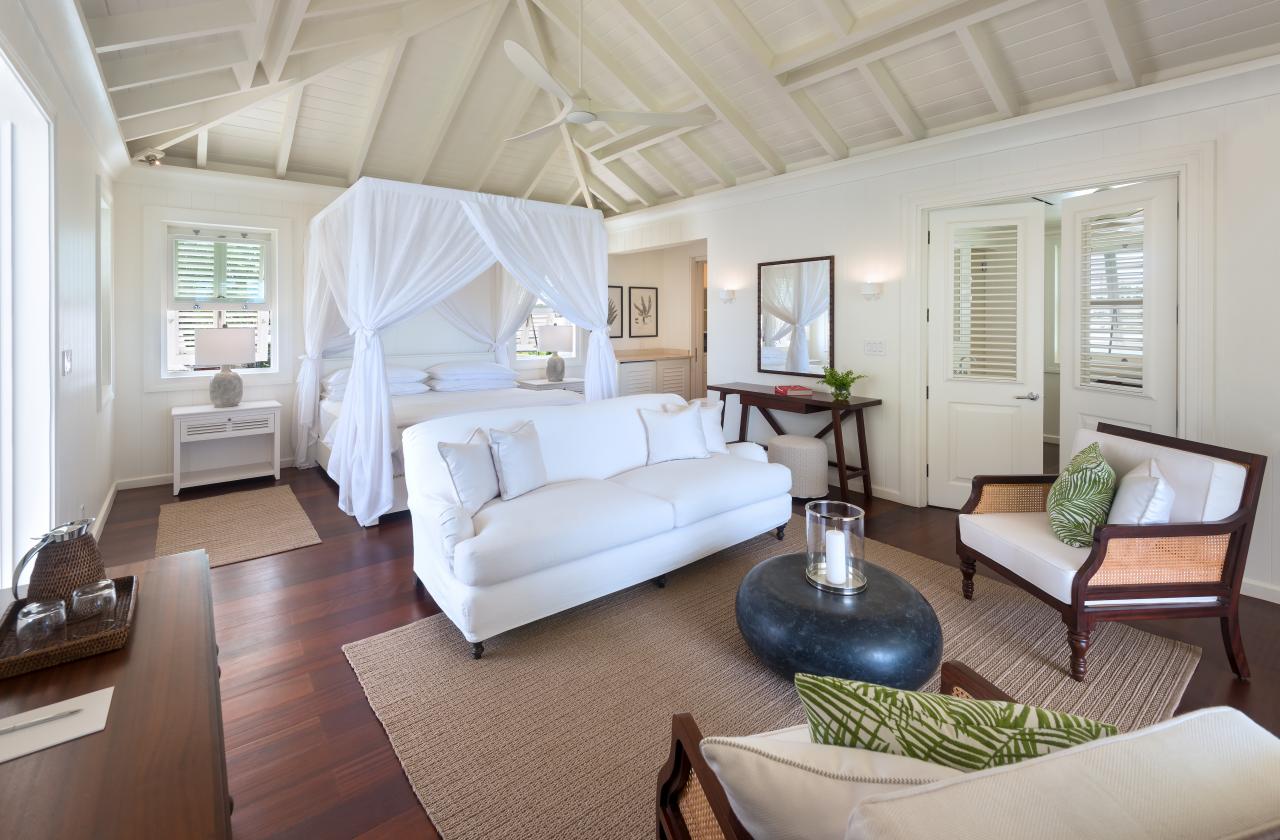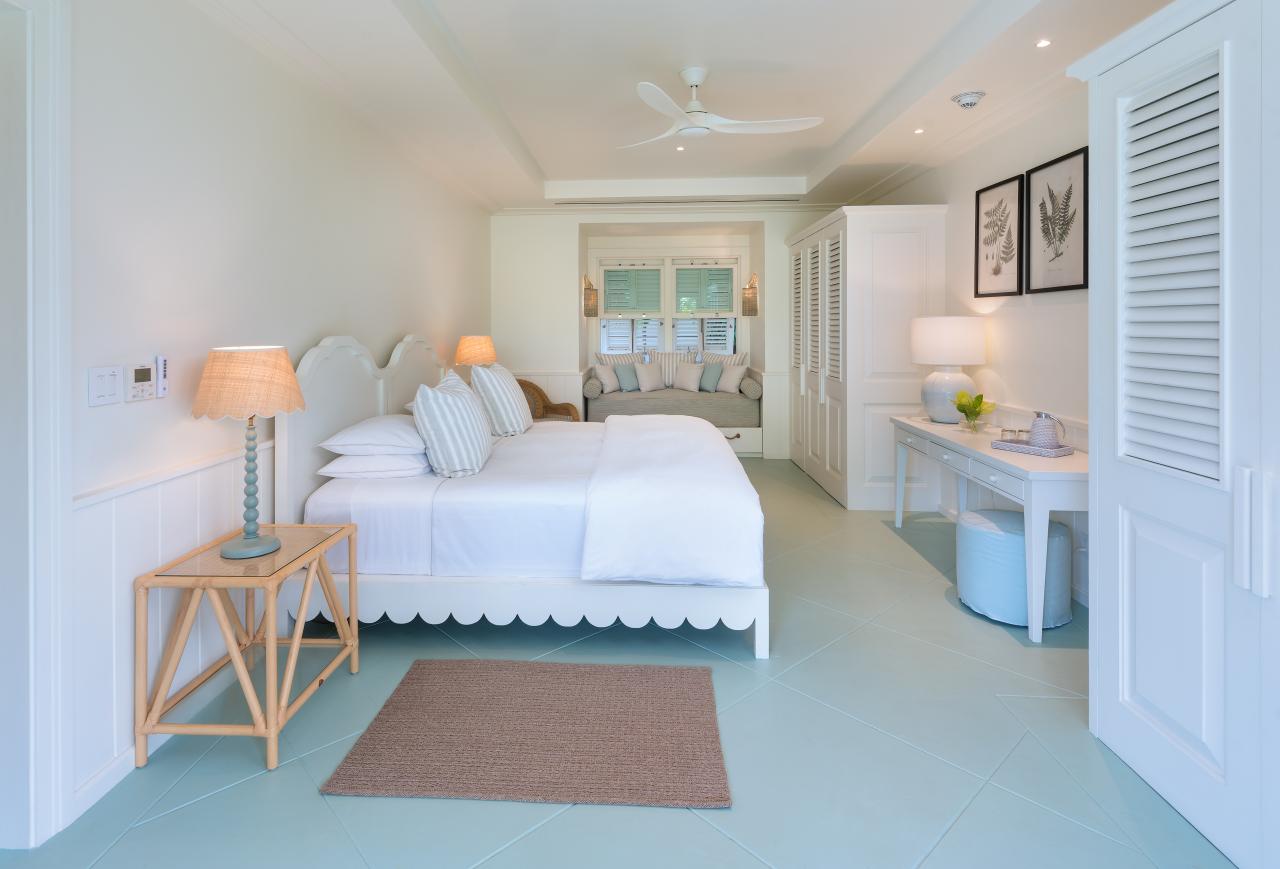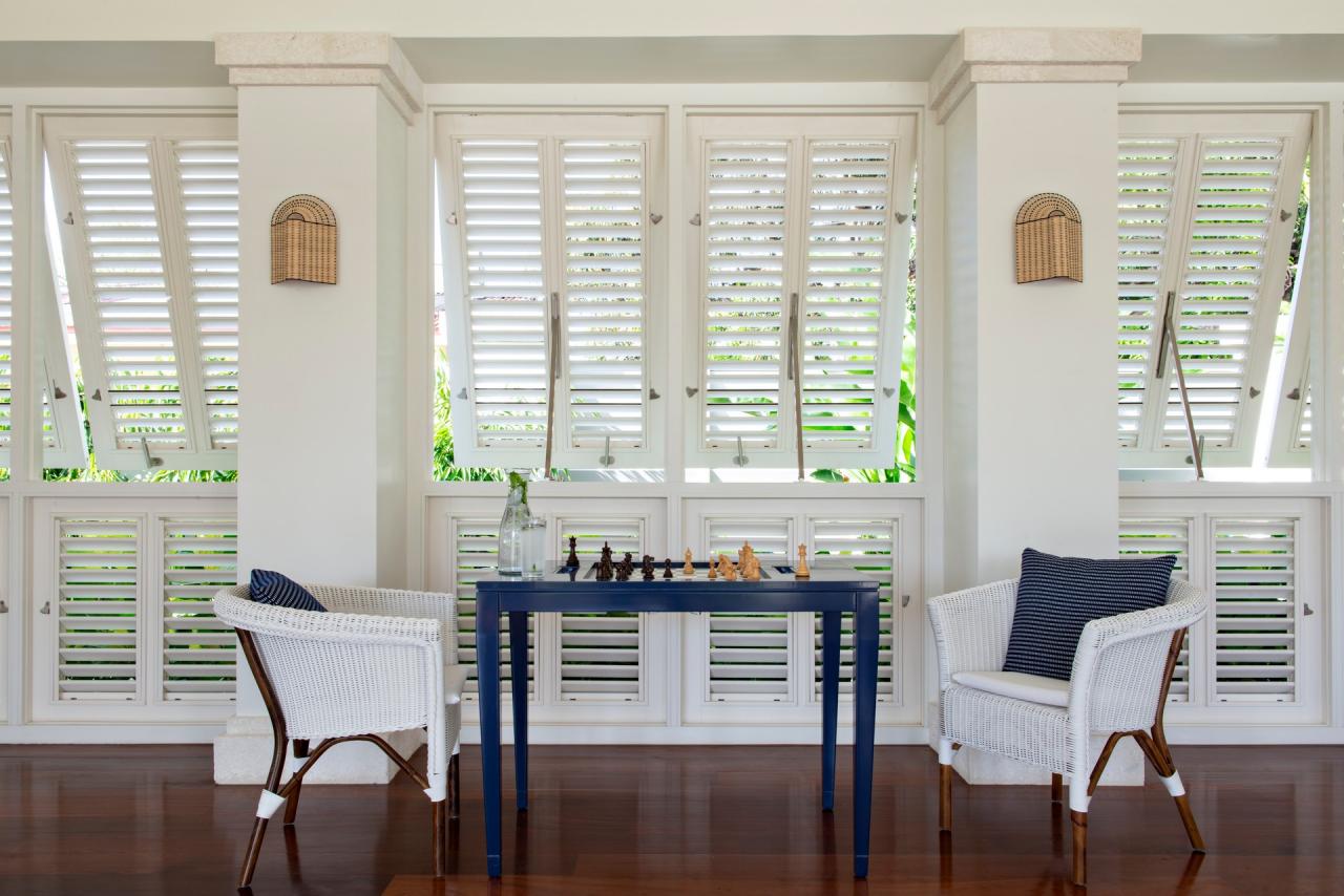 The water side of The Great House is equipped with The Great Bar that looks over a large infinity pool and the Caribbean Sea. There are twelve suites between The Great House, the Carriage House, the two cottages, and Hillaby House that can accommodate 30 guests. The seaside of The Great House offers many opportunities for guests to formally or informally dine, relax, or entertain. On the other side of the villa, a game room, home cinema, spa room, fully equipped gym, a conference room, and a floodlit US Open-style tennis court are set amongst lily ponds, lawns, and beautifully tended gardens.