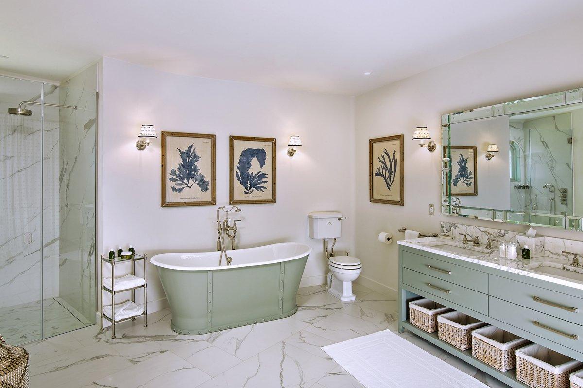 Primary Bedroom: King bed, toilet, tub, shower, ensuite, double vanity