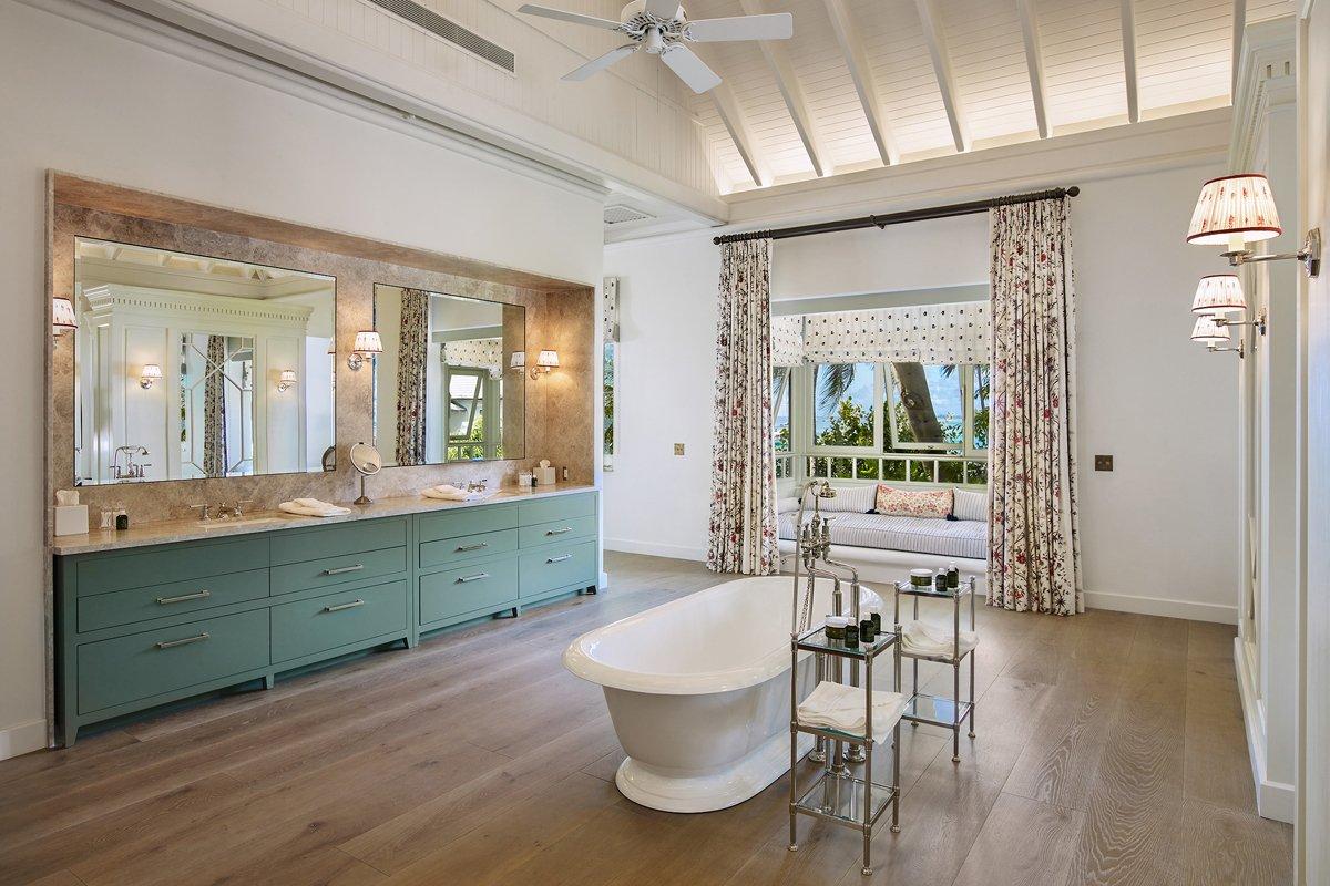 Located on the West Coast just minutes from Speightstown, guests will find the exclusive Greensleeves villa. This beachfront property includes access to two tranquil beaches. Guests are welcomed though the large bamboo framed Mongolian temple doors opening into a colorful Japanese garden. Teak walkways and an open plan design connect gardens and ponds with pool and sea views.
