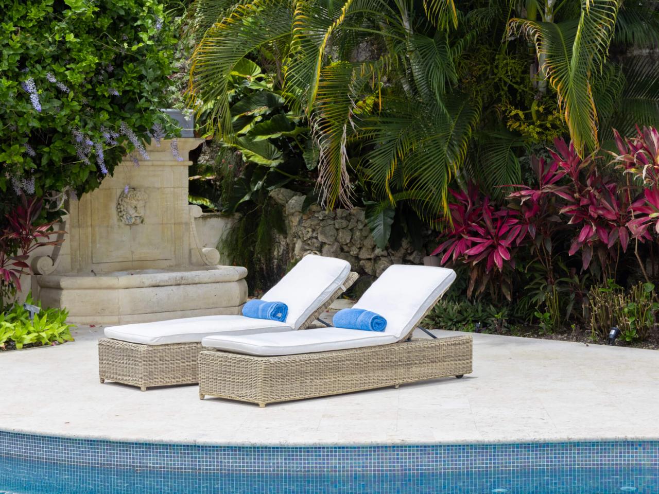 This Barbados villa rental embraces traditional Caribbean architecture and showcases an airy and inviting atmosphere. The guest house features luxurious fabrics and bespoke furniture, creating a stunning environment. An elegant outdoor terrace is perfect for enjoying meals, afternoon teas, or cocktails. There is also an expansive pool area with a lounge and bar, the quintessential place to relax and take in the vibrant views of the Caribbean sunset.