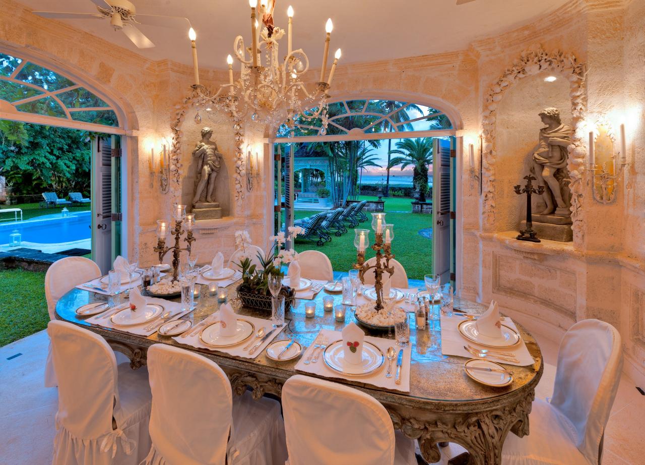 Leamington Pavilion's heart has to be the main salon in the center of the villa. The salon opens to a covered terrace with both dining and living areas - both are perfect for entertaining large groups while maintaining a comfortable and intimate setting. Formal dining is also availabe in the formal dining room.