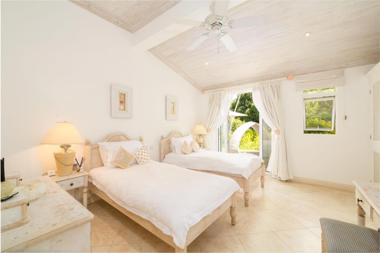 Bedroom 6: This room is equipped with two twin-sized beds, a smart TV, a private terrace, and an ensuite bathroom.