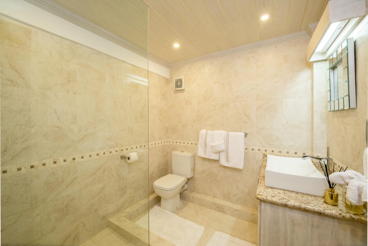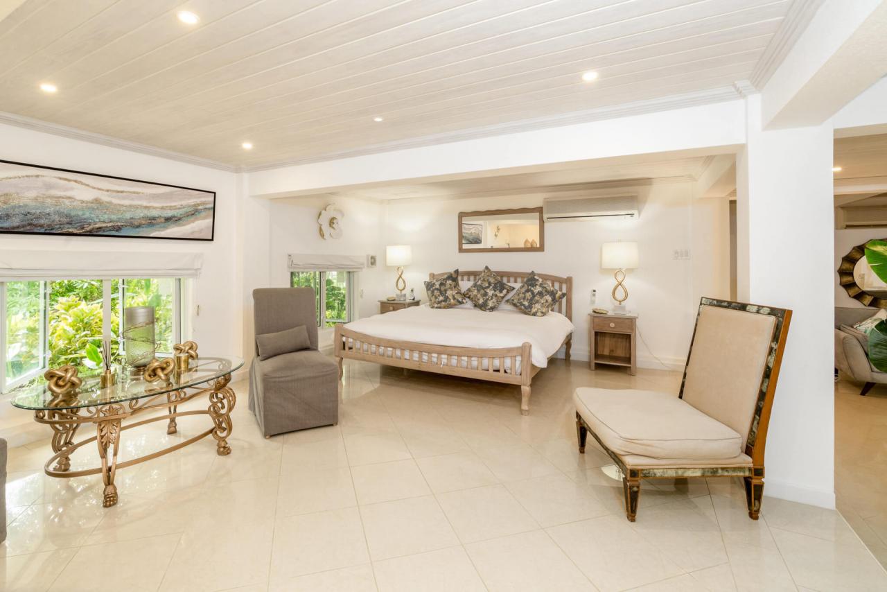 The entry-level has three generous bedrooms with ensuite bathrooms and private outdoor terraces. On the lower level is a spacious guest apartment equipped with its own entrance, a large bedroom, an open-plan living area, an ensuite bathroom, and a private dressing room. There is also a stylish one-bedroom cottage in the garden with its terrace. Finally, the top floor of Mango Walk has an impressive primary suite with an ensuite bathroom, a walk-in wardrobe, and an oversized terrace giving ultimate views of the sea and lush gardens. Guests can access the primary suite through internal stairs or an outdoor staircase from the pool area.