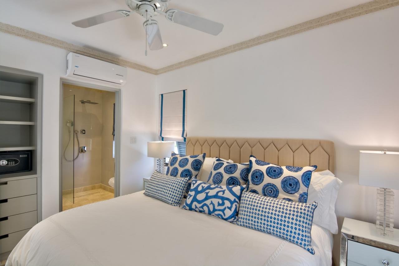 Bedroom 5: This room is equipped with a king-sized bed, AC, a safe, and an ensuite bathroom with a walk-in shower.