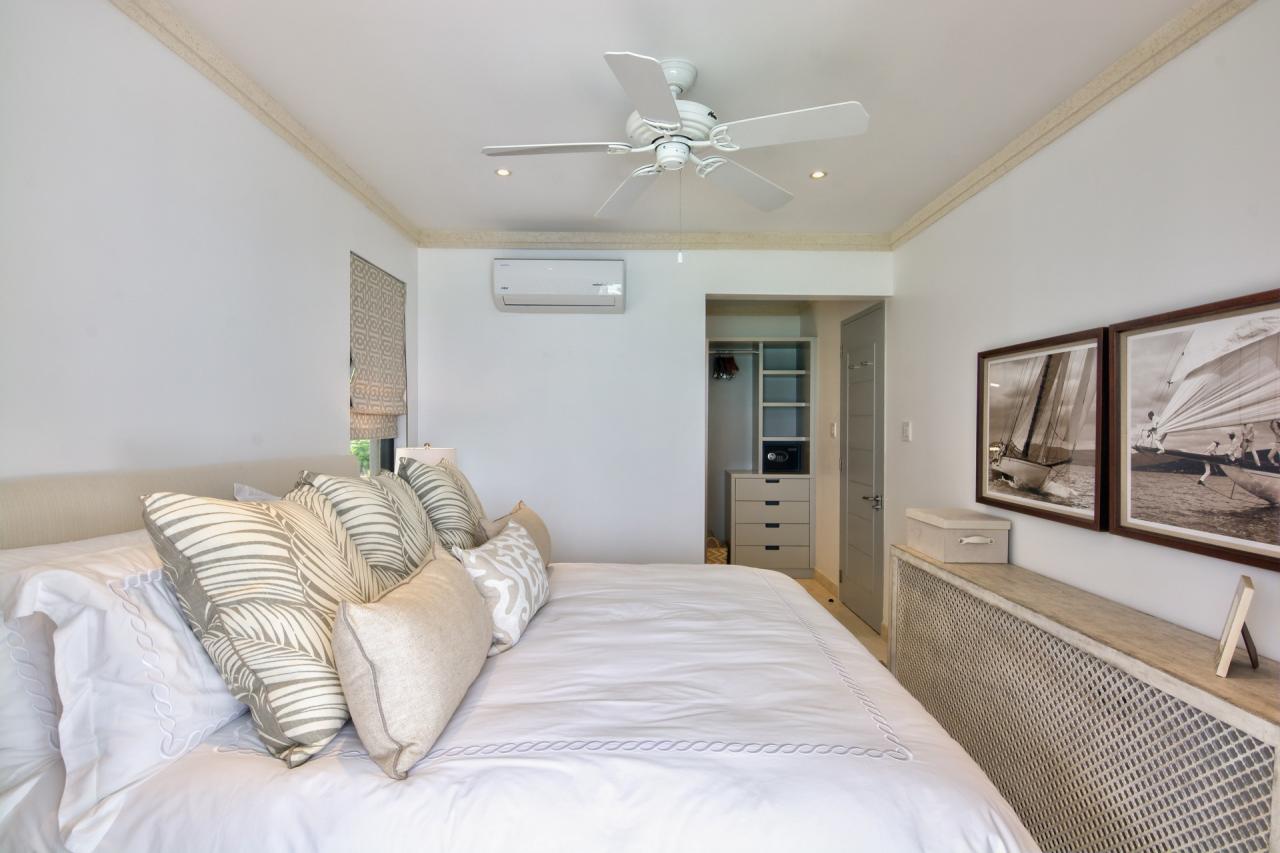 Bedroom 2: This room is equipped with a king-sized bed, a sea view, AC, a safe, and an ensuite bathroom with a walk-in shower.