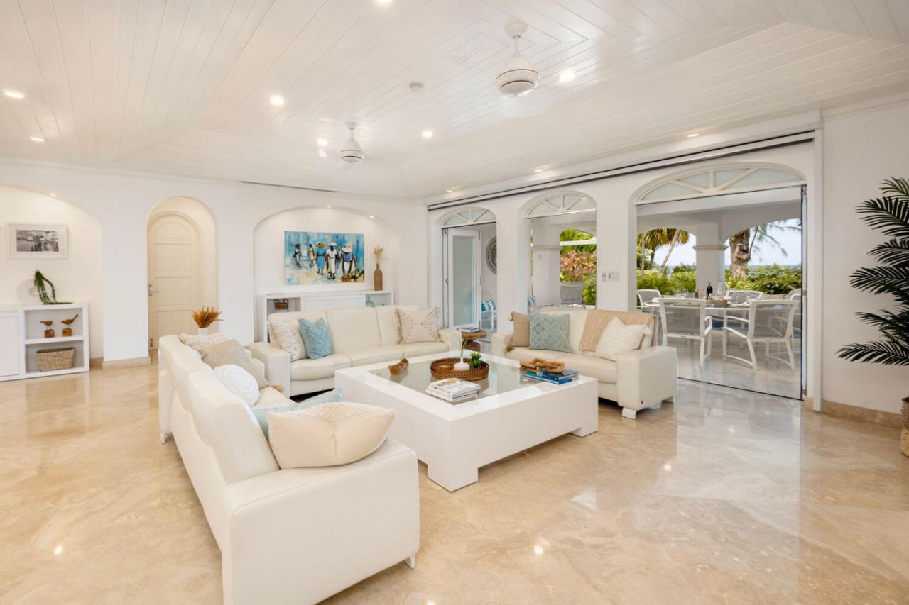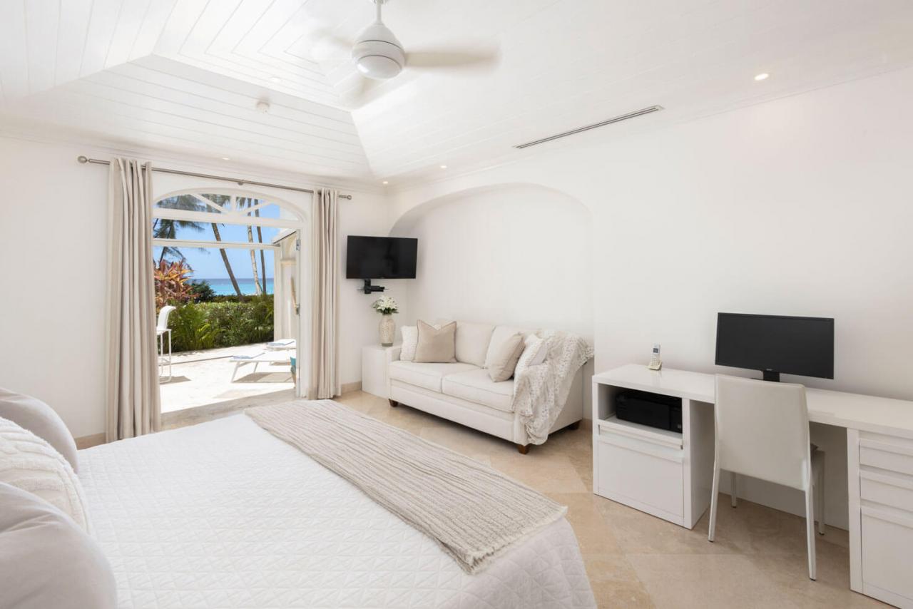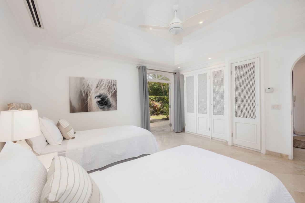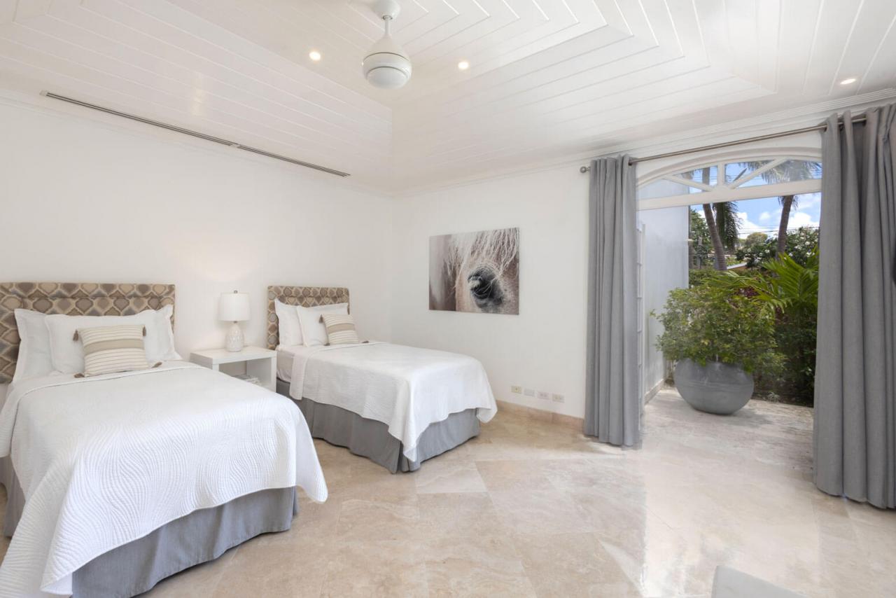 One Old Trees is a spacious ground-floor beachfront Barbados rental apartment on the West Coast. It is a bright corner unit with high ceilings and a private villa-style entrance, making it one of the largest and most luxurious apartments in the building. One Old Trees is only one bay south of the Sandy Lane Hotel, and Paynes Bay offers proximity to some of the West Coast's best dining, nightlife, and shopping.