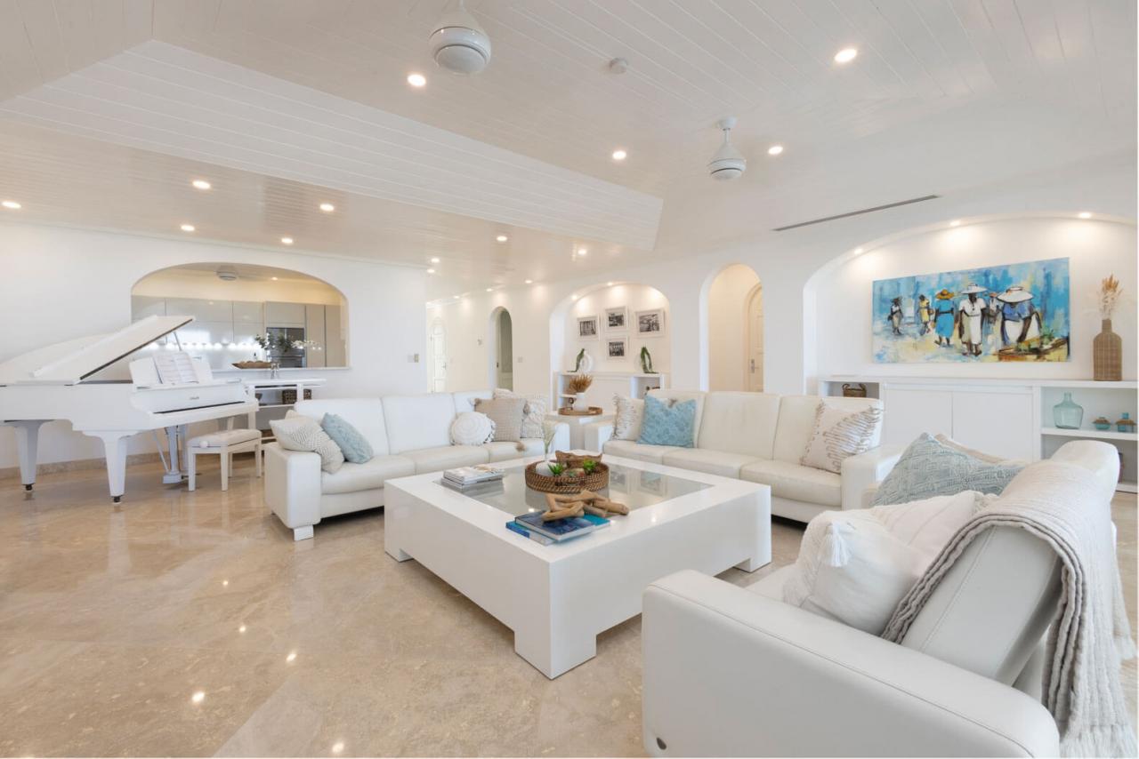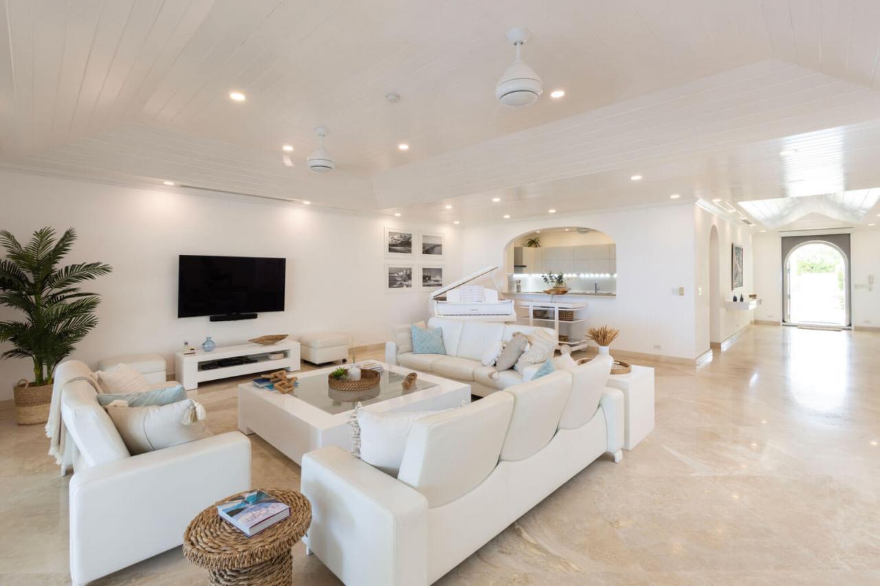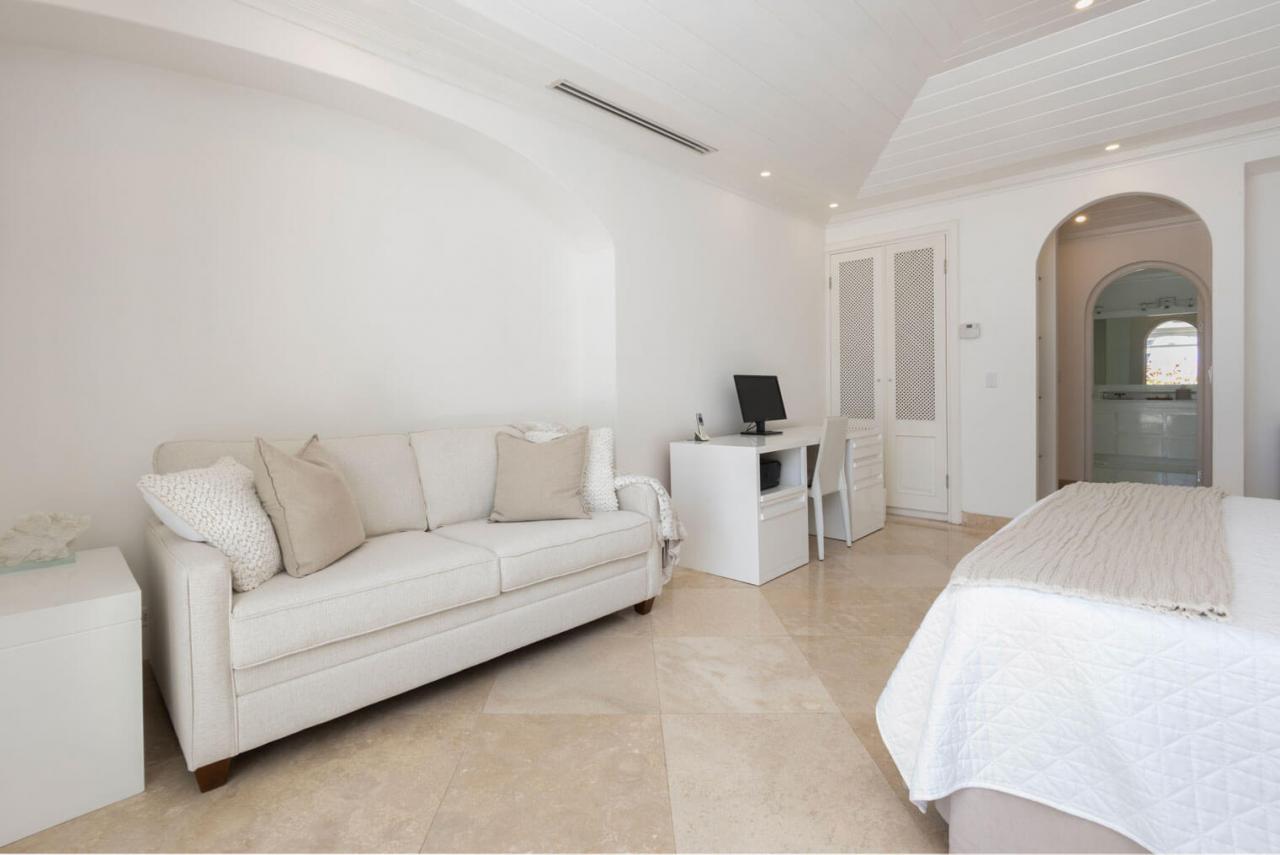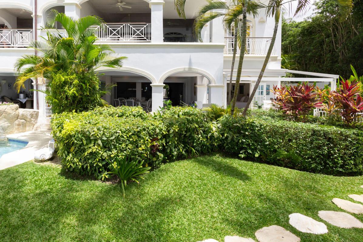 One Old Trees is a spacious ground-floor beachfront Barbados rental apartment on the West Coast. It is a bright corner unit with high ceilings and a private villa-style entrance, making it one of the largest and most luxurious apartments in the building. One Old Trees is only one bay south of the Sandy Lane Hotel, and Paynes Bay offers proximity to some of the West Coast's best dining, nightlife, and shopping.
