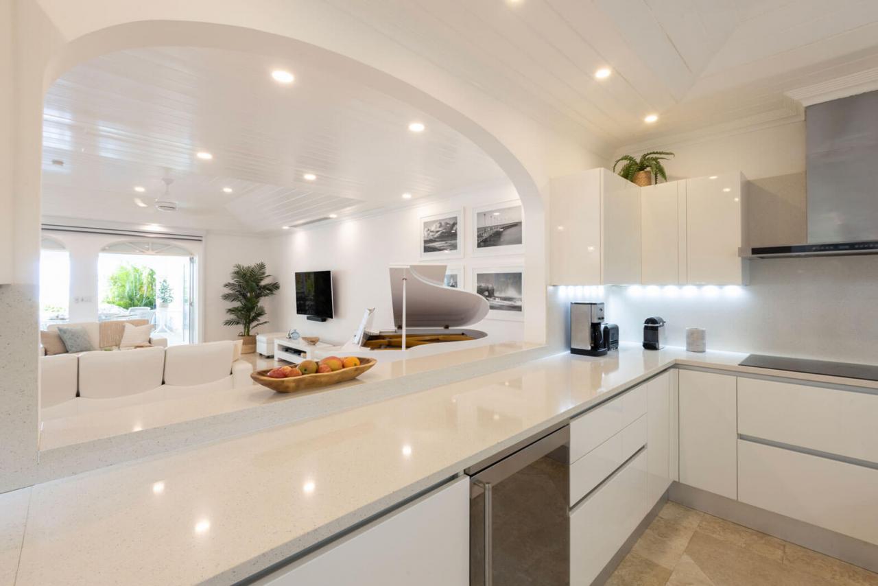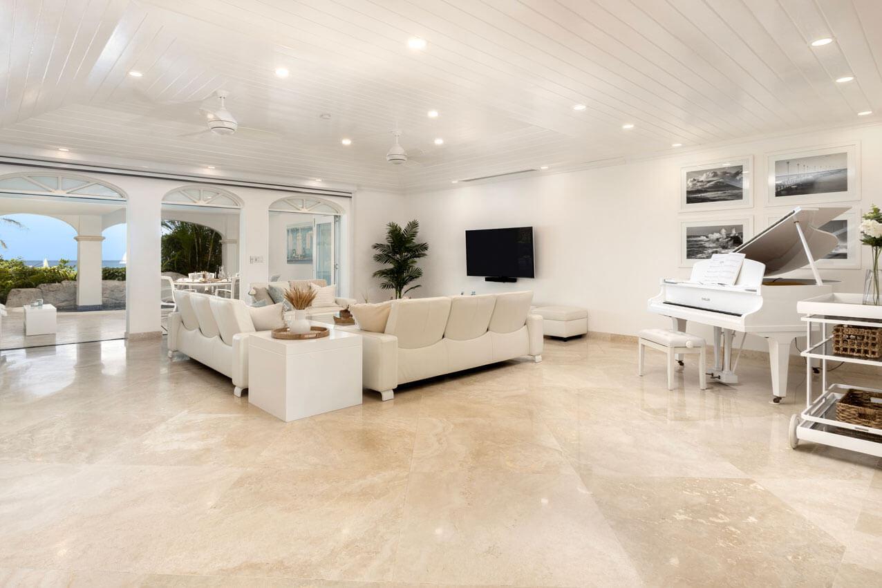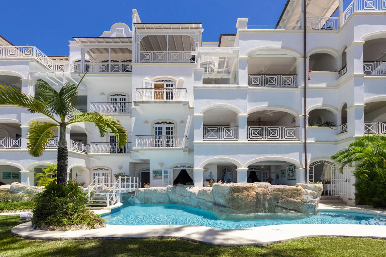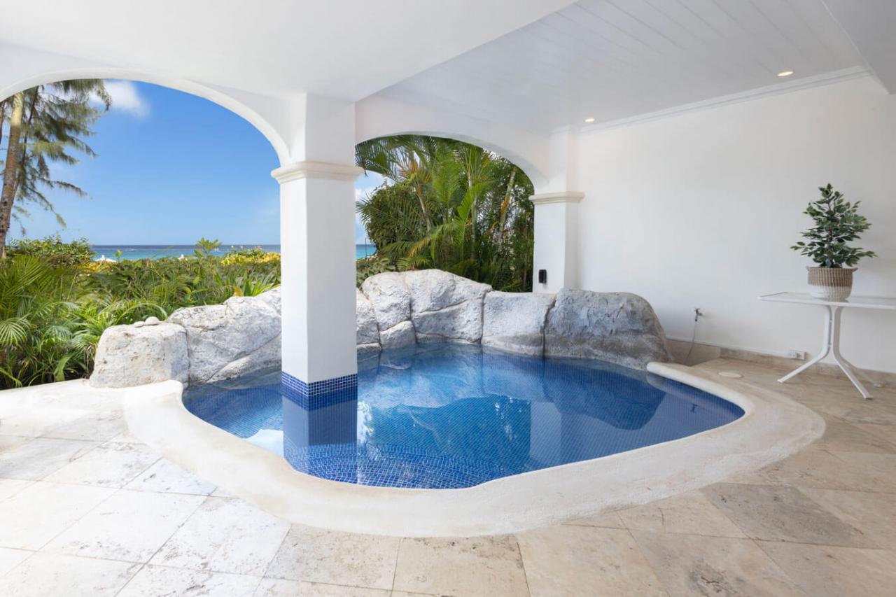 One Old Trees is a spacious ground-floor beachfront Barbados rental apartment on the West Coast. It is a bright corner unit with high ceilings and a private villa-style entrance, making it one of the largest and most luxurious apartments in the building. One Old Trees is only one bay south of the Sandy Lane Hotel, and Paynes Bay offers proximity to some of the West Coast's best dining, nightlife, and shopping.