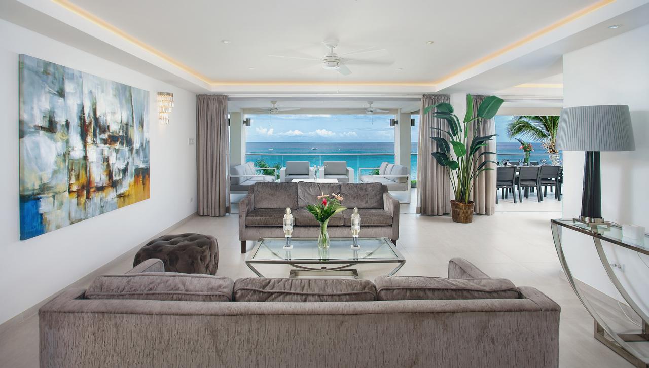 This luxury Barbados condo, The One at St. James , is located on the exclusive West Coast of Barbados and offers a serene escape with stunning views of Paynes Bay's white sandy beach. Situated close to trendy bars, restaurants, and local amenities, it combines a peaceful retreat with easy access to the island's vibrant atmosphere. The spacious open-plan design flows seamlessly from the entrance to panoramic vistas of the turquoise bay, enhancing its elegant and modern ambiance. An expansive double balcony spans the living and dining areas, providing uninterrupted views, while the condo is fully air-conditioned and equipped with state-of-the-art kitchen and entertainment facilities.