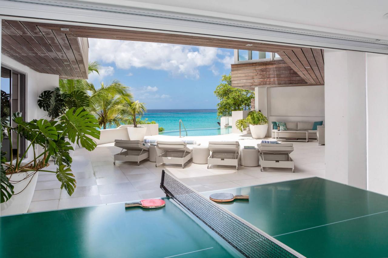 Portobello Villa's modern interior and contemporary furnishings contrast wonderfully with the Caribbean's timeless beauty. The dramatic setting and captivating views of the fresh sea air will invigorate guests when they enter the villa. The villa also provides guests with the ultimate luxury, with an attentive staff to cater to every need. The fifth bedroom of Portobello Villa doubles as a media room to provide flexibility for entertaining or relaxing. There is table tennis and an outdoor gym reminiscent of Rocky's training for guests who enjoy being active. There is a bar equipped with a TV, which is the perfect place to enjoy the sunsets and transition into memorable evenings under the stars.