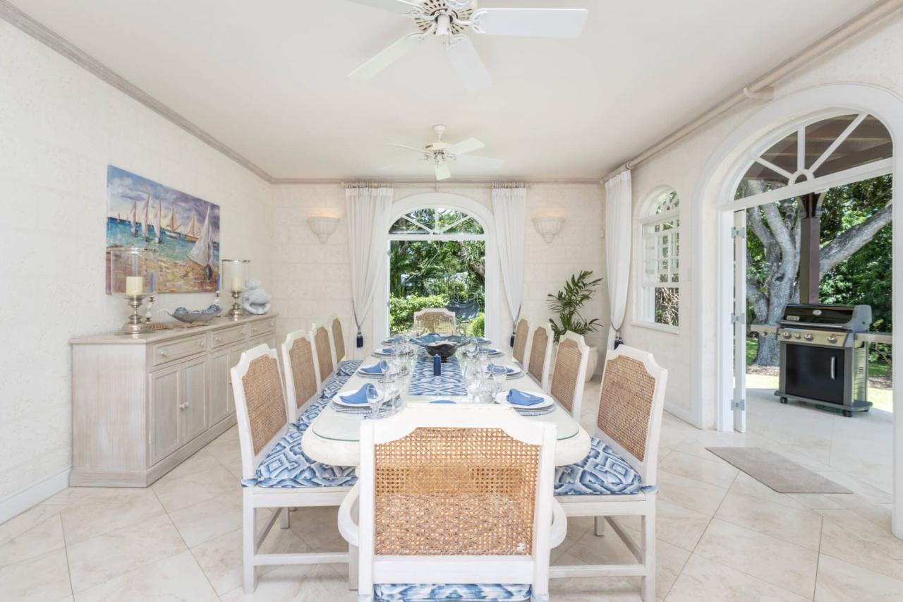 Designed around a central, airy atrium and seamlessly blending indoor and outdoor living, Saramanda has plenty of space for guests to simply relax and unwind; all of the living and dining rooms open out to the pool and garden. The large indoor living room features oversized comfortable sofas and French doors that open out on to a covered terrace with outdoor seating and an informal dining area. The laid-back media room, adjacent to the living room, features wide screen HDTV, cable and DVD and also opens out to the pool deck.