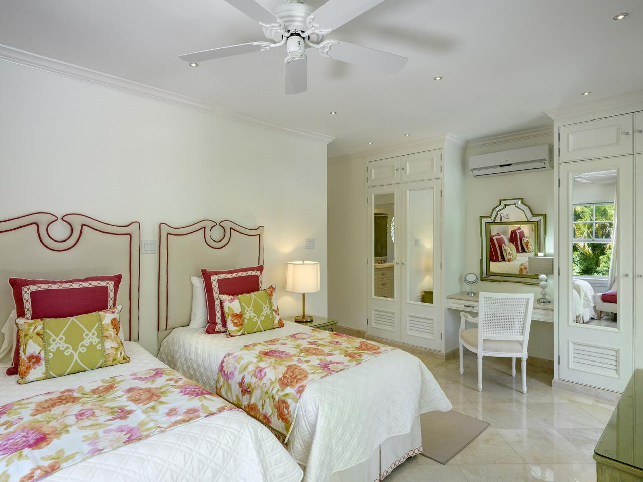- Bedroom 7: Two single beds (can be converted into king bed), en suite bathroom with shower, vanity, AC, ceiling fan, safe, sound system