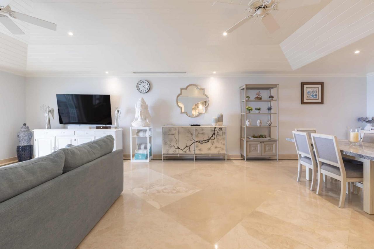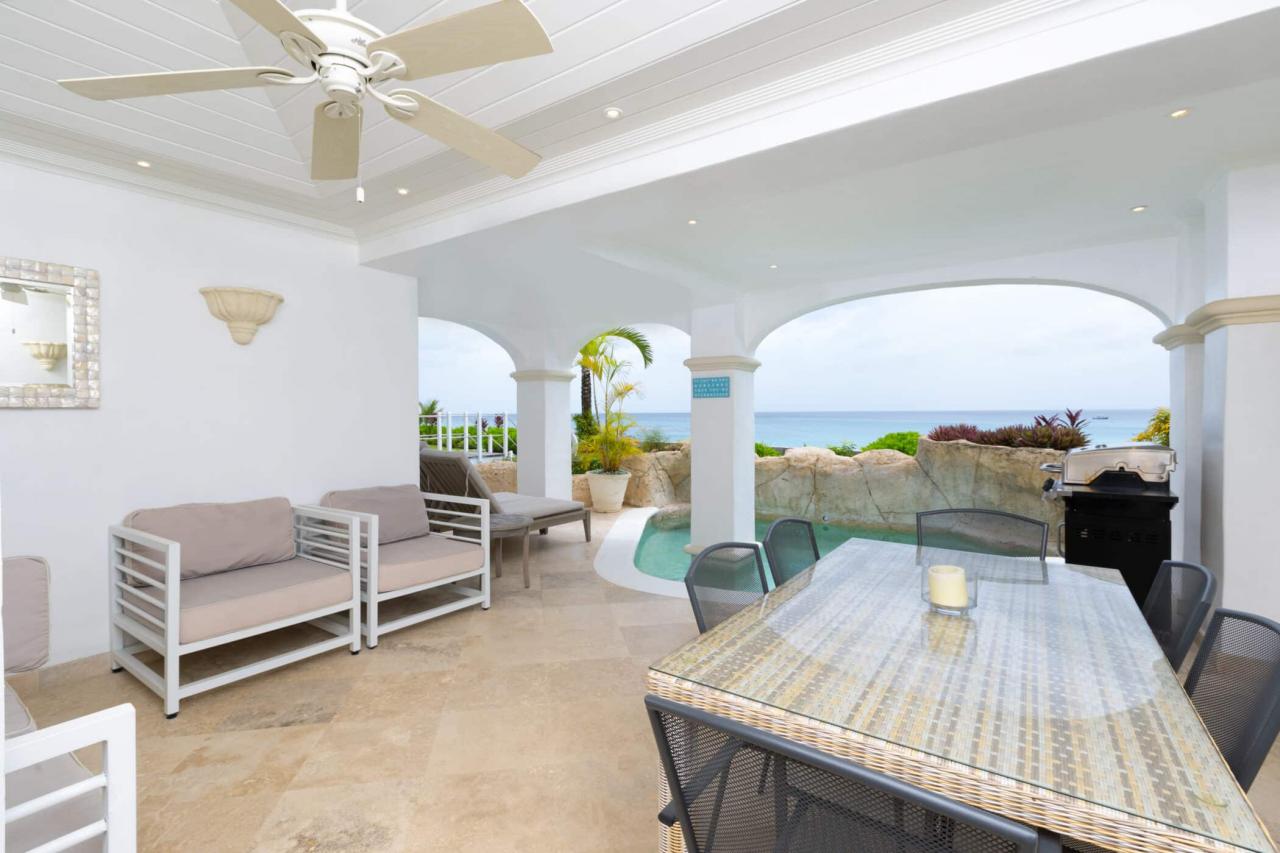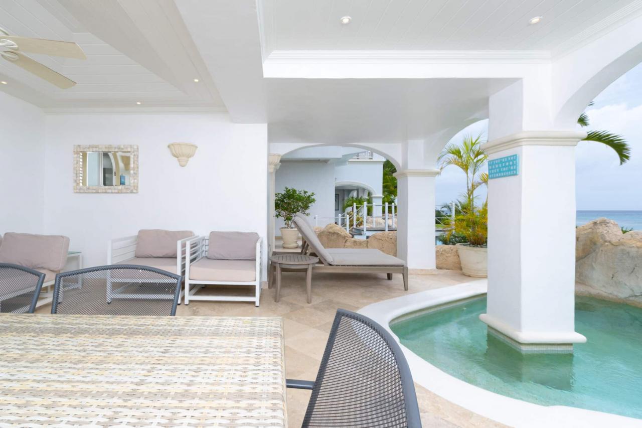 Sundance is a luxurious Barbados condo that perfectly combines refined comfort with the relaxed beauty of island living, making it an ideal Barbados retreat. Situated within the prestigious Old Trees enclave on Paynes Bay, this two-bedroom beachfront residence offers sweeping views of the turquoise Caribbean Sea from both the primary suite and open-plan living and dining areas. Elegant design elements such as polished marble floors, coral stone accents, vaulted tray ceilings, and soft ambient lighting create an inviting, upscale ambiance. The expansive covered terrace is perfect for alfresco dining or lounging in the shade, while the private plunge pool provides a secluded haven just steps from your door. Guests also have access to a lagoon-style swimming pool set amidst lush tropical gardens, enhancing the feeling of tranquility and exclusivity.
