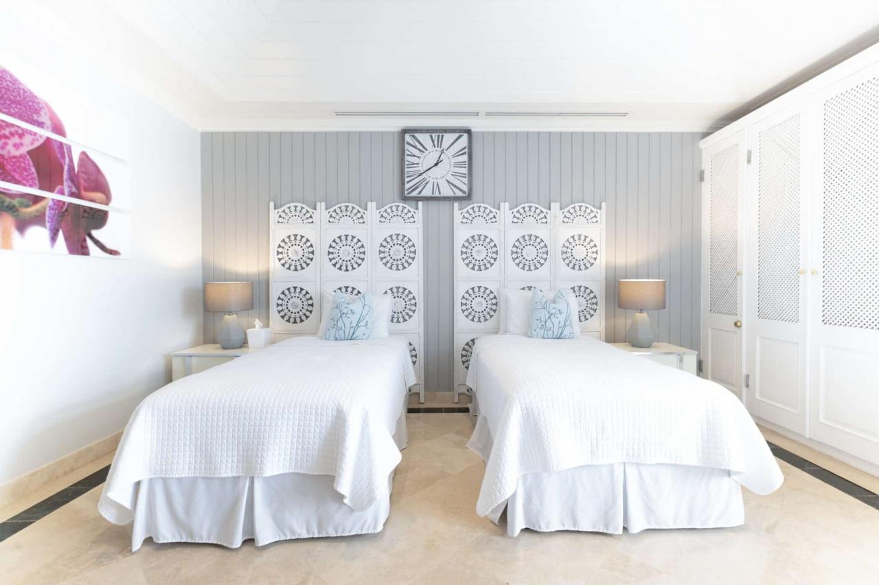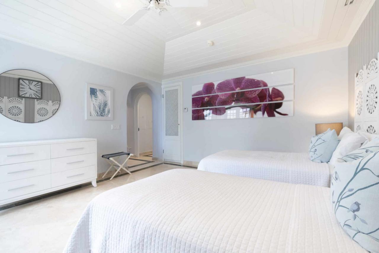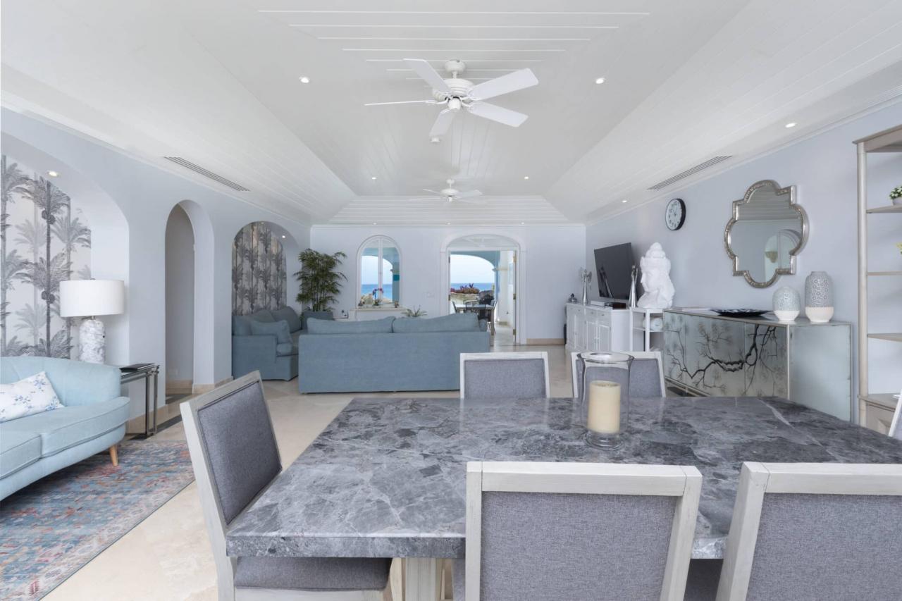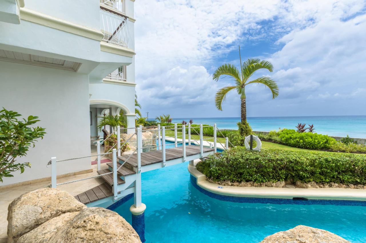 Sundance is a luxurious Barbados condo that perfectly combines refined comfort with the relaxed beauty of island living, making it an ideal Barbados retreat. Situated within the prestigious Old Trees enclave on Paynes Bay, this two-bedroom beachfront residence offers sweeping views of the turquoise Caribbean Sea from both the primary suite and open-plan living and dining areas. Elegant design elements such as polished marble floors, coral stone accents, vaulted tray ceilings, and soft ambient lighting create an inviting, upscale ambiance. The expansive covered terrace is perfect for alfresco dining or lounging in the shade, while the private plunge pool provides a secluded haven just steps from your door. Guests also have access to a lagoon-style swimming pool set amidst lush tropical gardens, enhancing the feeling of tranquility and exclusivity.
