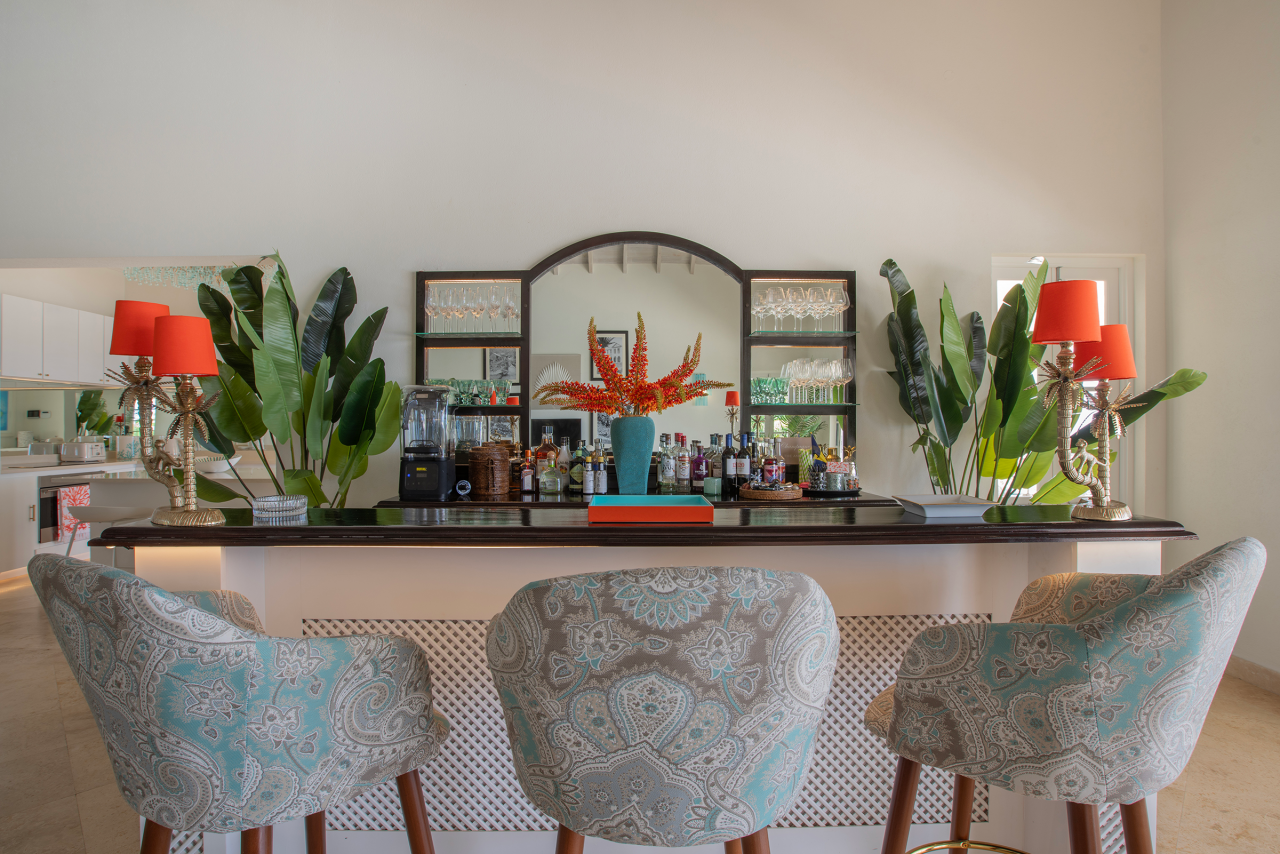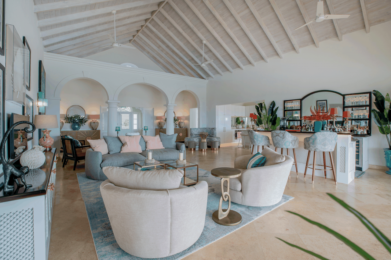 When guests enter Villa Aquilae, they are greeted by a spacious great room with high pickled wood ceilings and large double doors opening to an expansive pool terrace. On the terrace, guests can enjoy the ocean breeze, soak in the sun's rays, or gaze at twinkling stars. Lush gardens also surround a magnificent infinity-edge pool. The outdoor area is the perfect place to relax with a covered verandah for dining al fresco and several sundecks with comfortable loungers.