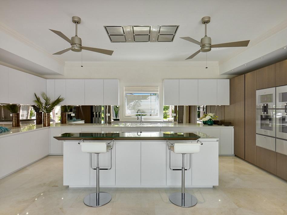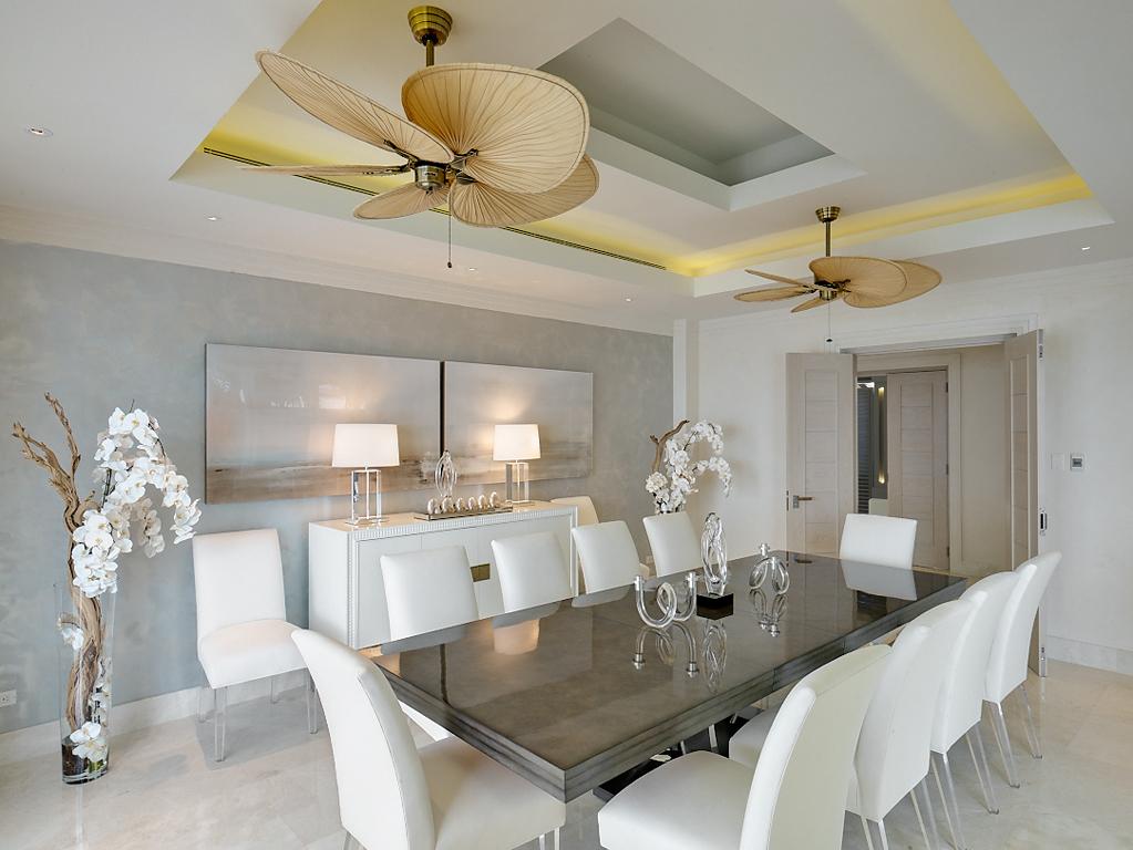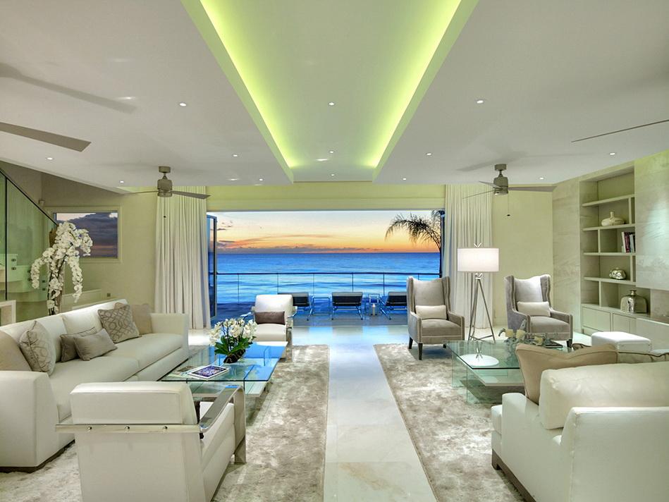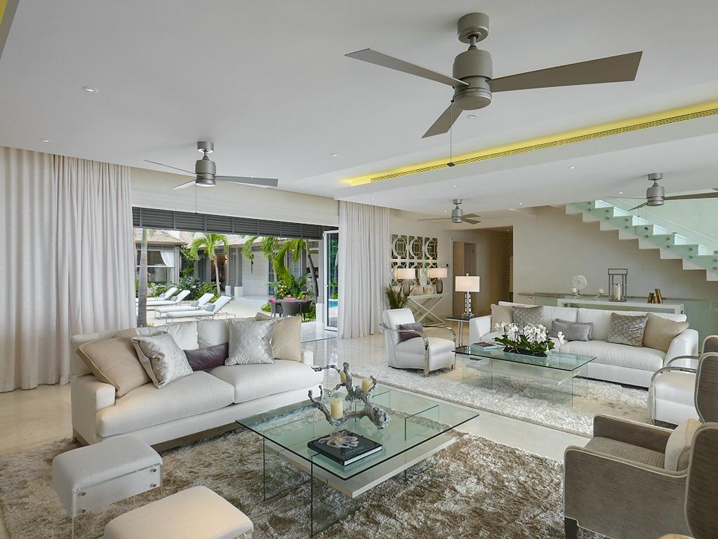 The living area leads on to the spacious patio which is ideal for entertaining or simply relaxing and enjoying beautiful sunsets. A private staircase leads from the patio directly to the white sand beach and calm blue waters of the Caribbean Sea. Also accessed by this private staircase is the beach level of this stunning villa, comprising 1,700 square feet and boasting a private cinema and gym room, itself with a fabulous view.