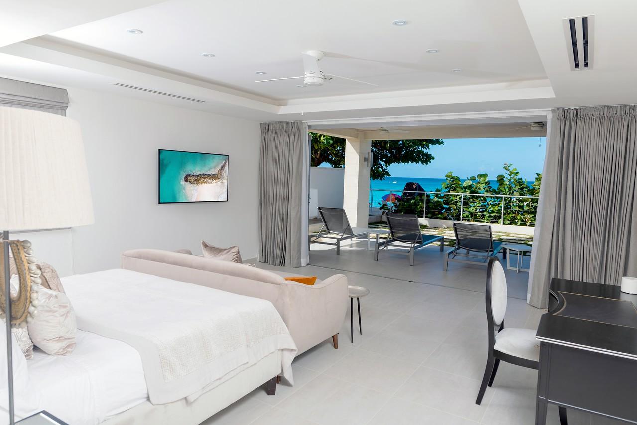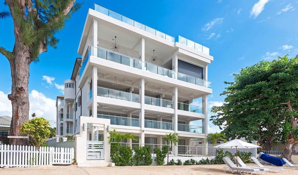 Located on the West Coast of Barbados, The Villa at St. James is a ground-floor condo providing a luxurious retreat with stunning views of Paynes Bay's pristine white sands and turquoise waters. Nestled in an exclusive development, this Barbados condo offers a seamless connection to its breathtaking surroundings, making it the perfect getaway for an exceptional Barbadian vacation. Floor-to-ceiling glass doors greet you upon entry, framing the glistening waters and setting the tone for a remarkable stay. The open-plan living and dining areas flow effortlessly to the covered deck, pool, and Caribbean Sea, while the ultra-modern kitchen, equipped with cutting-edge appliances, provides unobstructed ocean vistas.