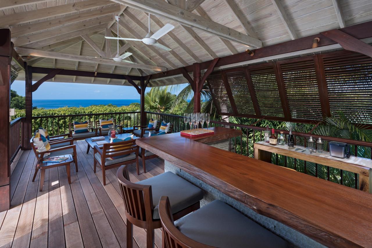 Balinese stone carvings are featured in the formal living area which opens to the pool terrace. Guests will enjoy the infinity edge pool as it seemlessly blends into the Caribbean horizon. At night, the pool terrace is fit for kings with cocktails, midnight swims and stargazing opportunities front and center. Villa Tom Tom features a gourmet kitchen and dining area complete with an alfresco dining option - complete with views.