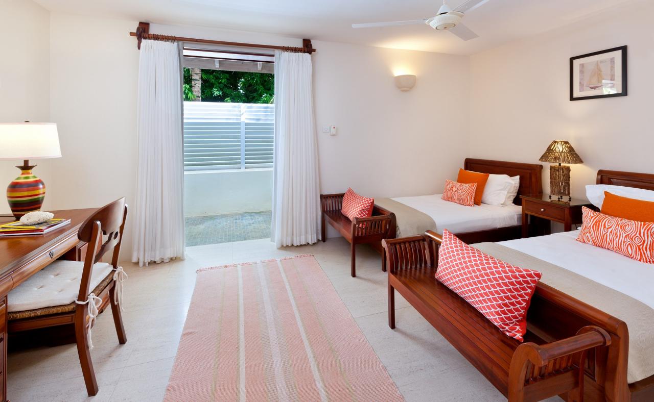 Bedroom 4: two twin beds with ensuite bathroom including shower and single vanity, private patio
