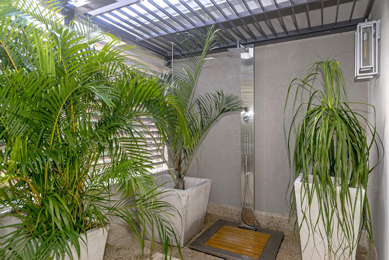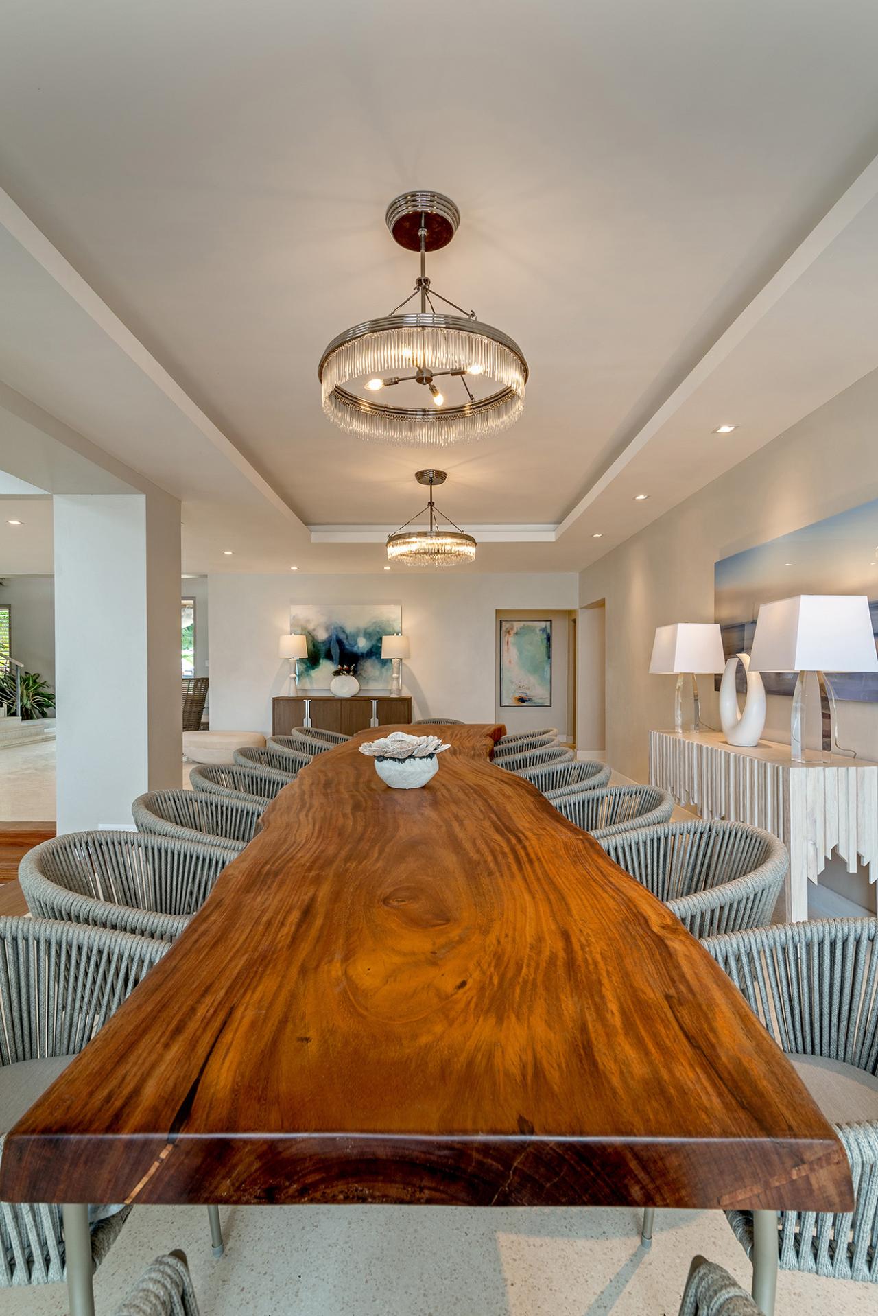 When entering the villa, guests will walk through a dramatic Jequitiba wood ceiling entranceway and an oversized pivot door. This home has an excellent collection of artisan pieces that represent the best Jamaican artists including Dougall, Mara Made, Pinto Pottery, and Dready Art.