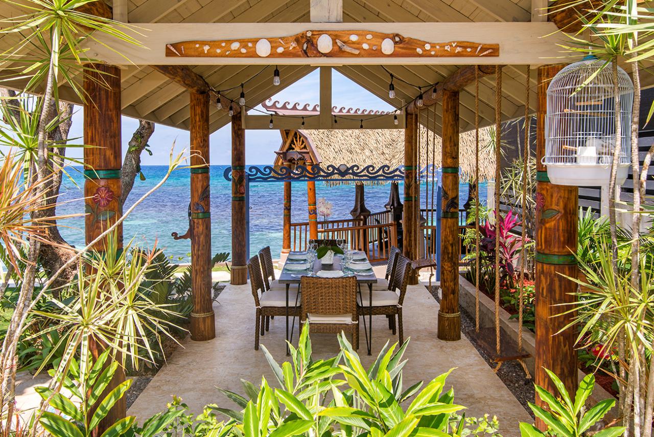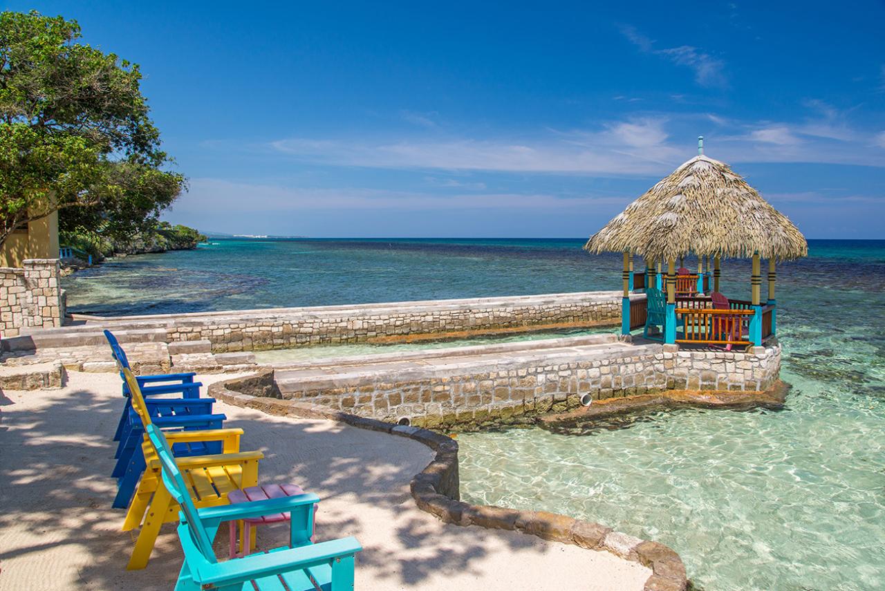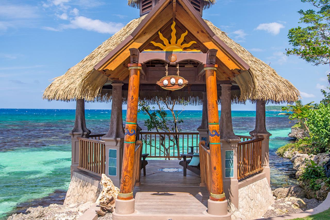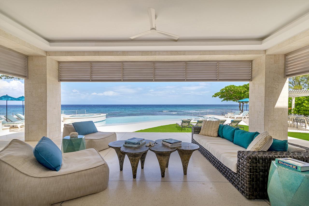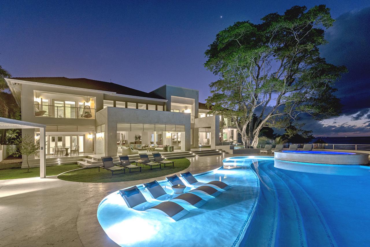 This Jamaica villa and cottage rental are the epitomai of ocean edge living. The sitting room is sunken which benefits from wide openings to the veranda. There is a custom artisanal dining table that is made from one piece of Tamarind that can seat 18 guests. The villa offers an air-conditioned game room that leads to the media room that is equipped with large comfortable sofas and an 85" flat-screen TV.