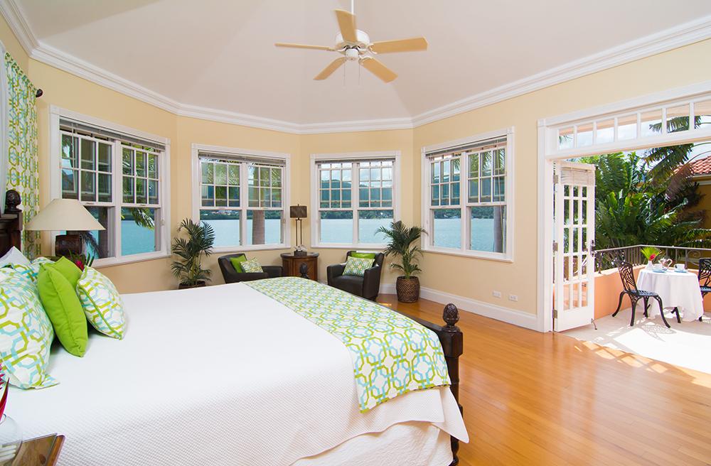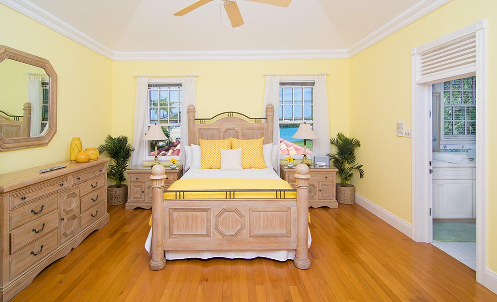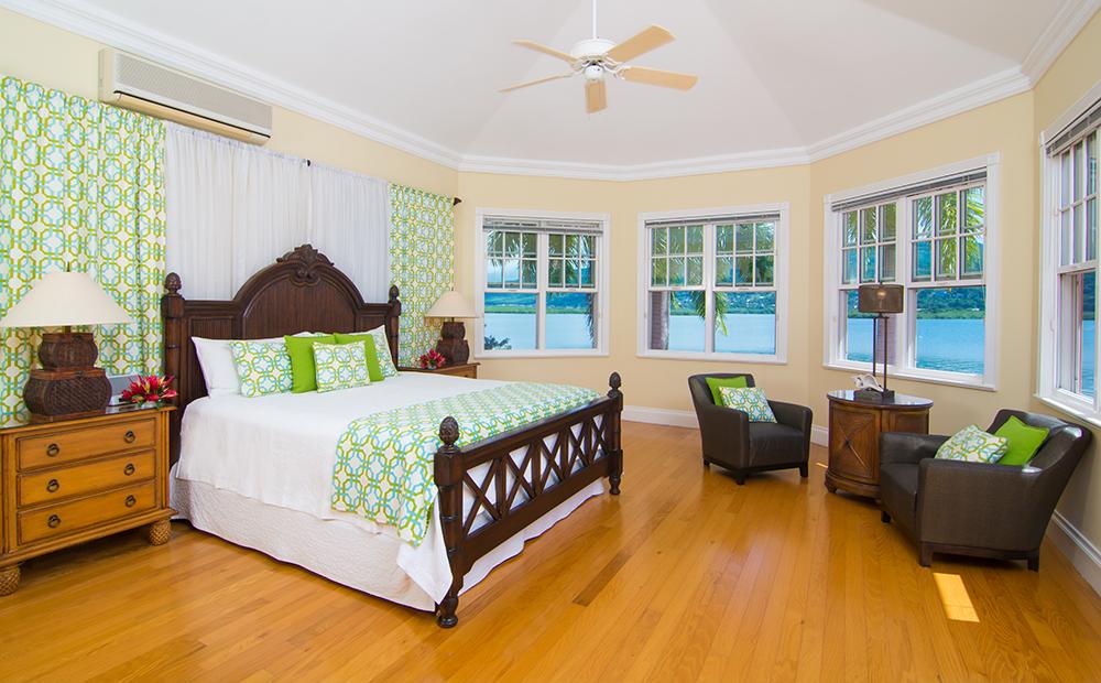 An inside dining area adjoins the living room. But most guests opt for the shaded verandah for home-cooked breakfasts, lunches and dinners. This comfy furnished verandah is also the gathering spot for drinks and hors doeuvres as the sun sets over the point just beyond Calypso Shores beach. If you wish to dine away for the villa one evening, The Houseboat is just five minutes away and offers an excellent menu on a floating restaurant with a wonderful view over the water.