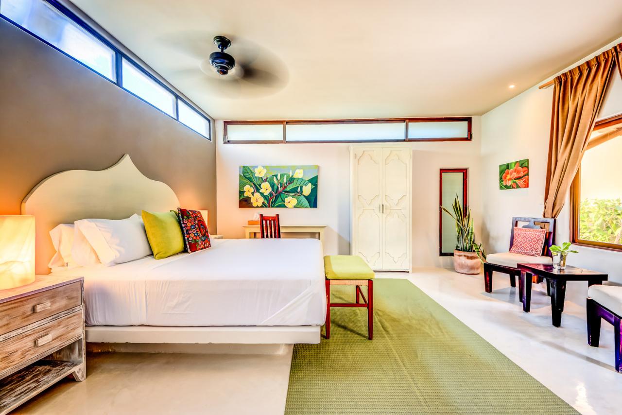 Bedroom 4: King bed (can be converted to two twin beds), AC, en suite bathroom with bathtub and shower, TV, ceiling fan