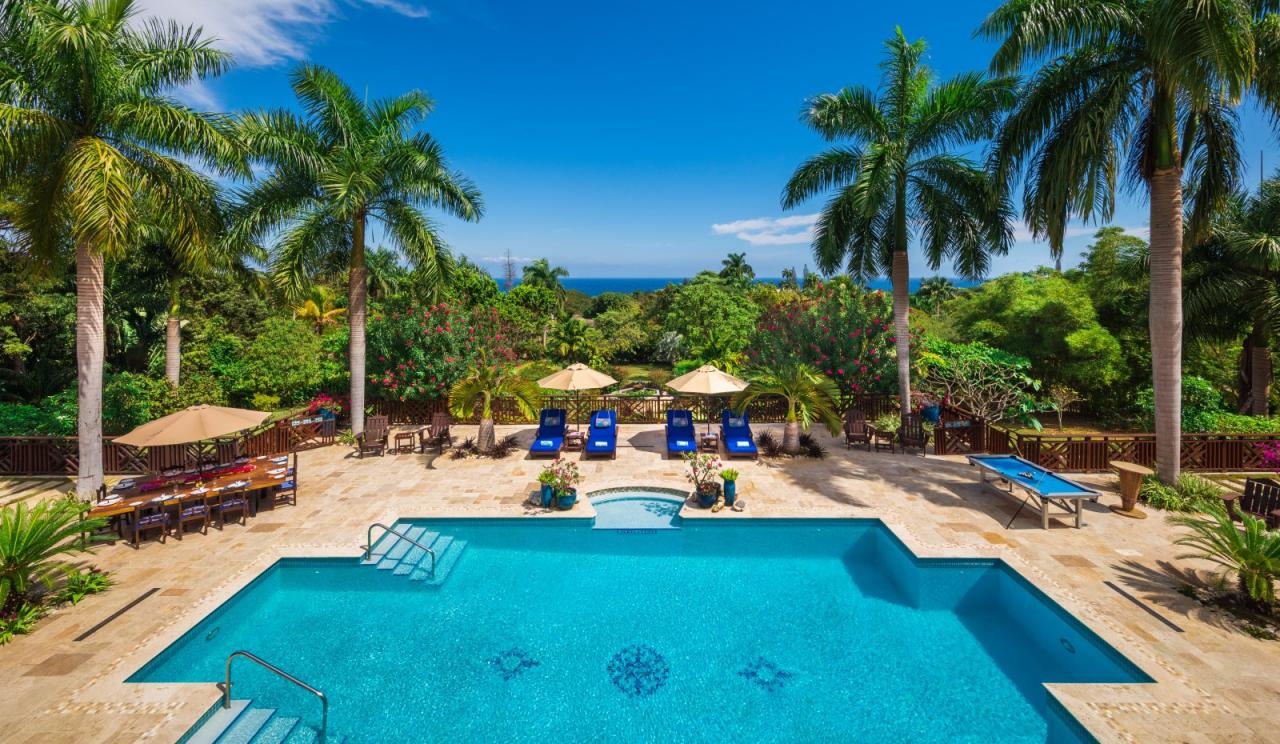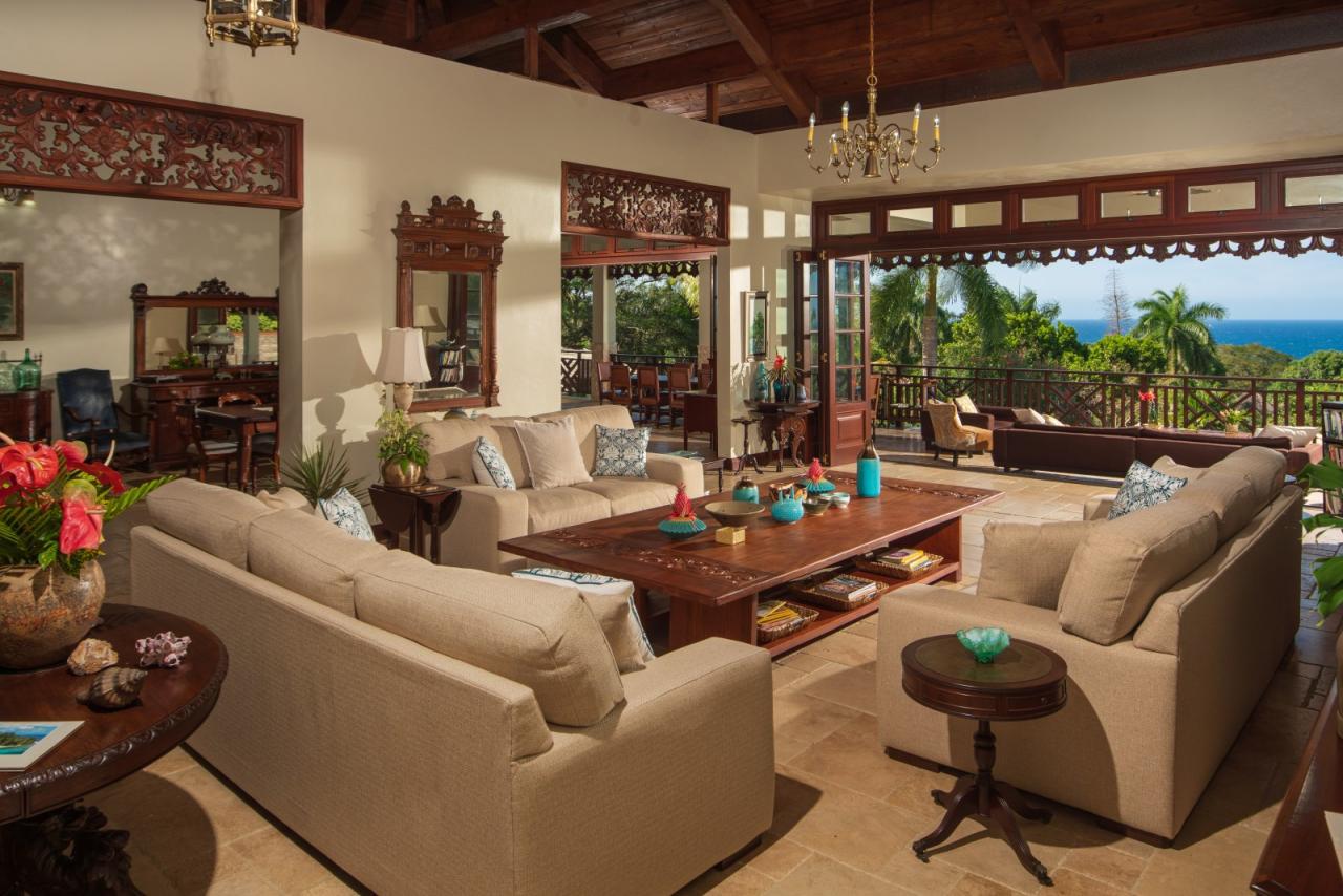 With its soaring ceilings and cool travertine floors there is a warm and welcoming old world feel that will make it your home away from home. A comfortable getaway where friends and family of all ages can gather, relax and entertain, where outdoor living is maximized by a 45”x20” heated swimming pool surrounded by large verandas offering breathtaking views of the lush tropical gardens, Tryall Club and the Caribbean Sea beyond.