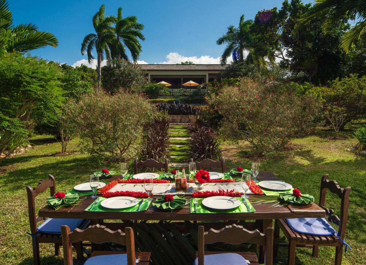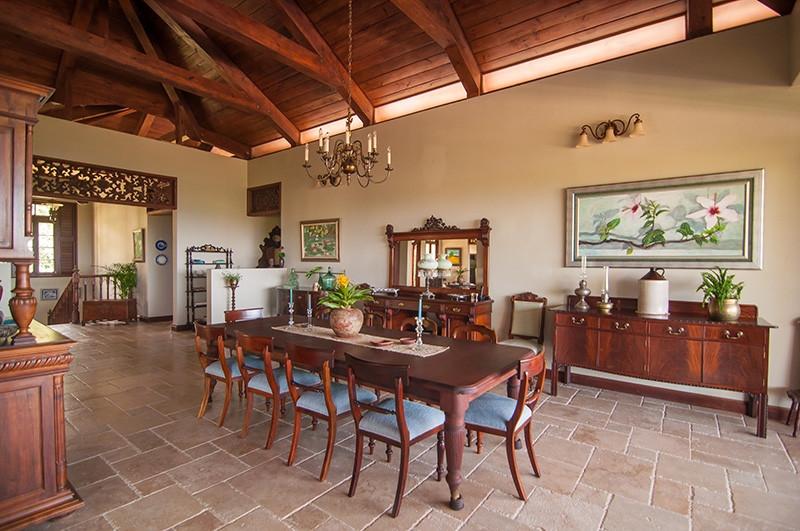 The spacious living/dining area welcomes you with interesting artwork, intimate and inviting seating and doors that fold away to allow in refreshing breezes from the adjoining upper veranda. In addition to the formal indoor dining, the verandah provides for open air meals and boasts a cozy seating area for morning coffee or moonlit after dinner cocktails. Dinner around the pool on the lower level is an option worth exploring on the days when no one wants to be indoors at all! Chef Paul is one of Tryall Club's best chefs. The spacious kitchen with its 9ft granite island, local custom made mahogany cabinets and modern stainless steel appliances, stands ready for the chef to prepare mouthwatering meals for Jubilation’s guests, all served table side by our cheerful butler.