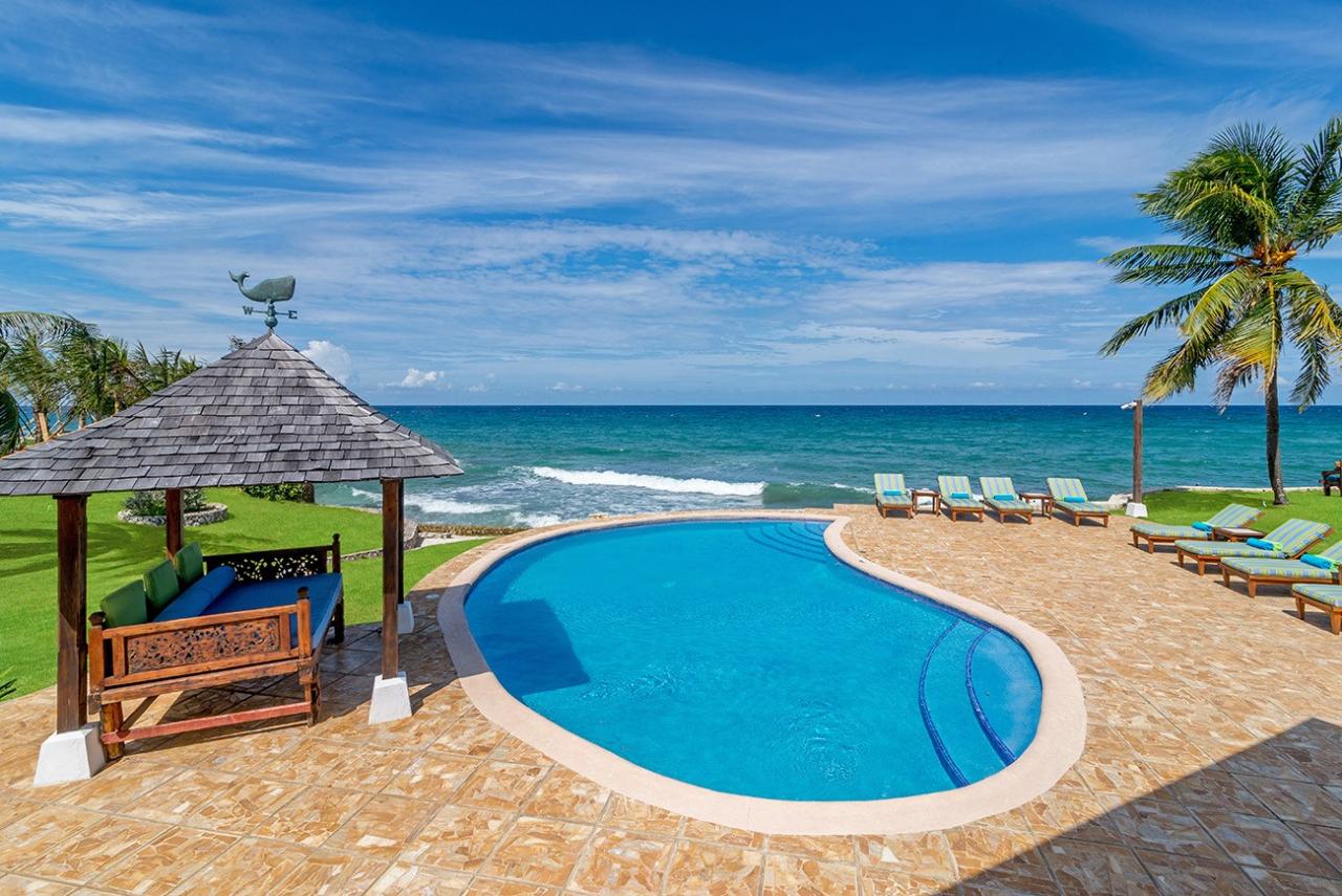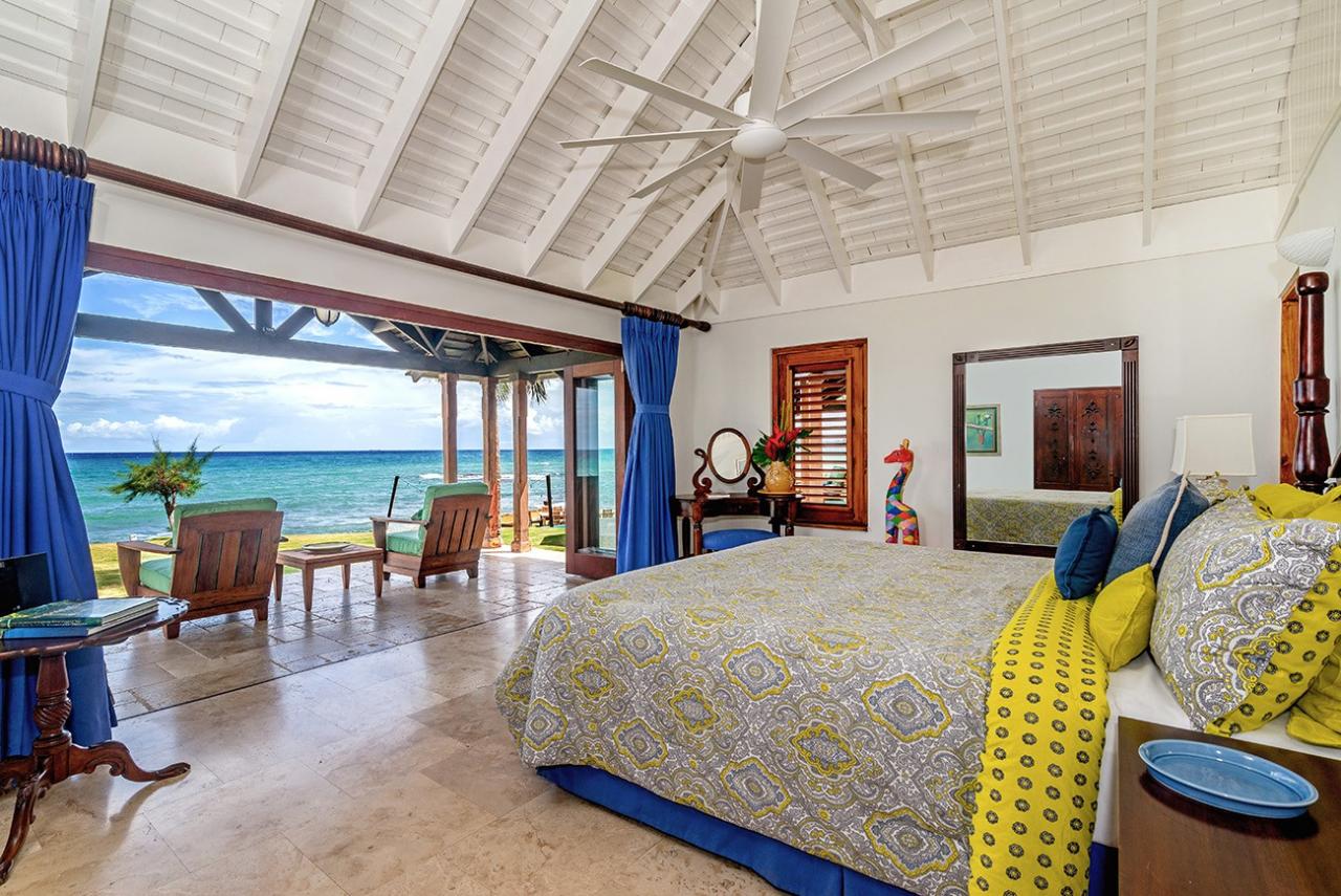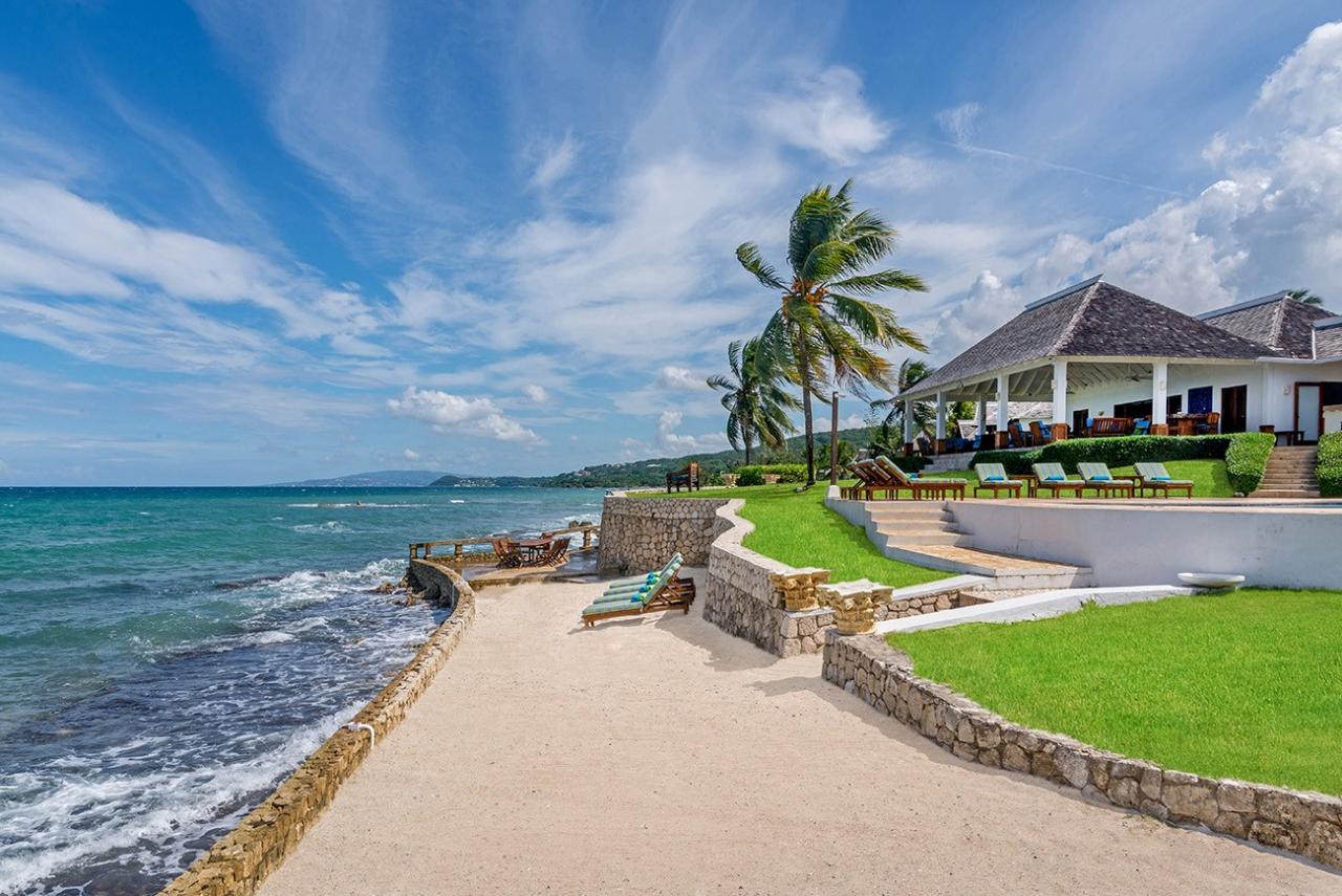 A sprawling double lot directly on the Caribbean Sea is among the most stunning waterfront locations in all Jamaica. This is the rarefied site of the private villa named Karma Bay. Six bedrooms, multiple gazebos and sitting areas, and a beautiful pool with a broad marble terrace are bordered by a wide soft lawn, coconut palms and a blue view that stretches to infinity. The vista is so expansive that it captures both the sunrise and sunset skies.