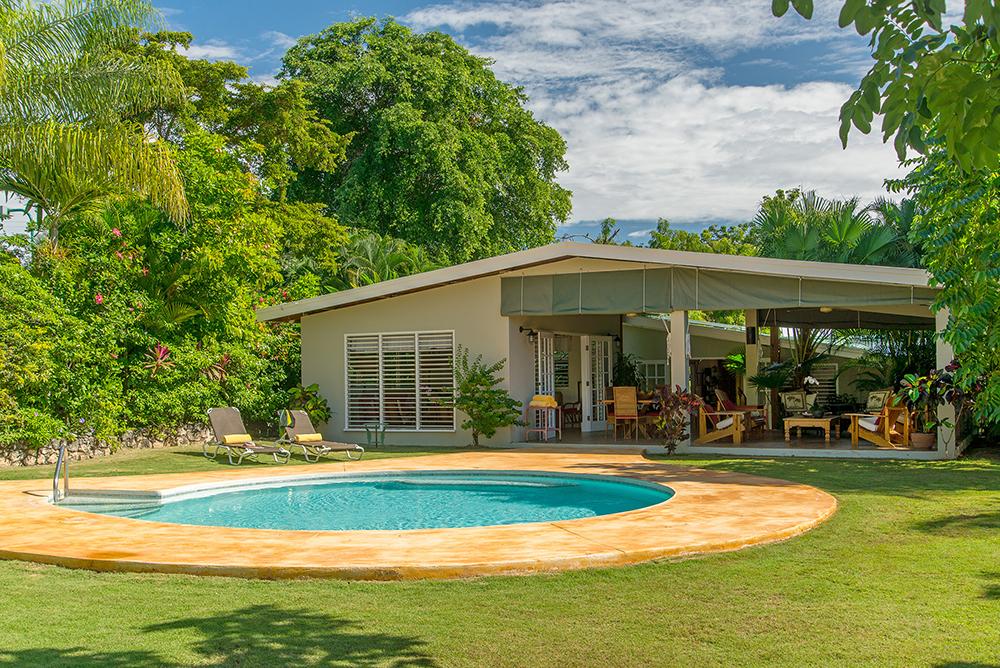This 3-bedroom casual cottage shares a delightful waterfront site with its sister property, Coral Cove Villa, on the clear waters of Discovery Bay. Linga-Awile sits on a lovely, long, large lawn. Beyond the lawn and swimming pool is its sugary white sand beach with two thatched roof umbrellas for shade.